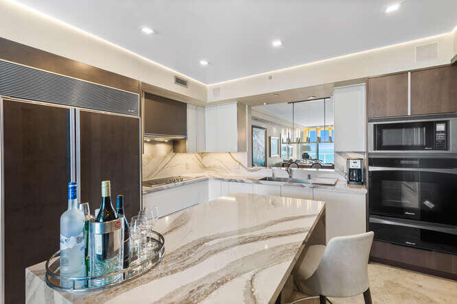 If you're looking for an elegant, serene, completely renovated home, then this condo is for you. 2130 sq ft on the 23rd floor with 2 beds/2,5 baths, 2 parking spaces, den, and office in sunny Ft. Lauderdale. The building also has 2 pools (1 beachside), a 2 story gym with squash court, party rooms, conference room, valet service and more.This condo has top of the line upgrades like quartz counter tops in kitchen and bathrooms, marble floors, blackout electric shades in bedrooms, wood kitchen cabinets, and surround sound.