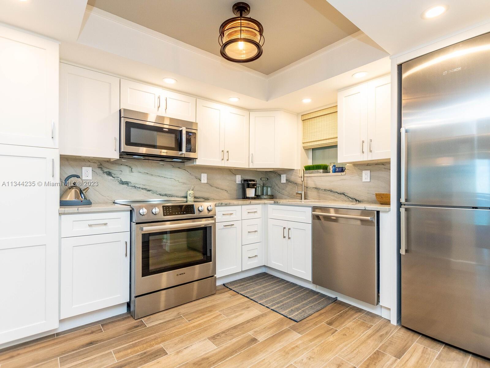 This beautiful 1-bed/ 1 1/2-bath Oceanfront condo offers breathtaking views of the ocean from every corner of the space. Upon entering, you are struck by the stunning ocean views and the natural light, creating a warm and welcoming atmosphere. This fully renovated unit was remodeled from top to bottom, stud to stud, with all City permits. From the recessed lighting, soundproofing, drywall, gourmet kitchen with Bosch appliances and mechanicals, nothing was left untouched. There is an additional ample space which can be used as an office, bedroom or storage. This perfect turnkey home with a deeded (indoor, second floor) parking spot is ready to be enjoyed by its next Owner. Enjoy Hollywood's famous boardwalk, beaches and fine dining.