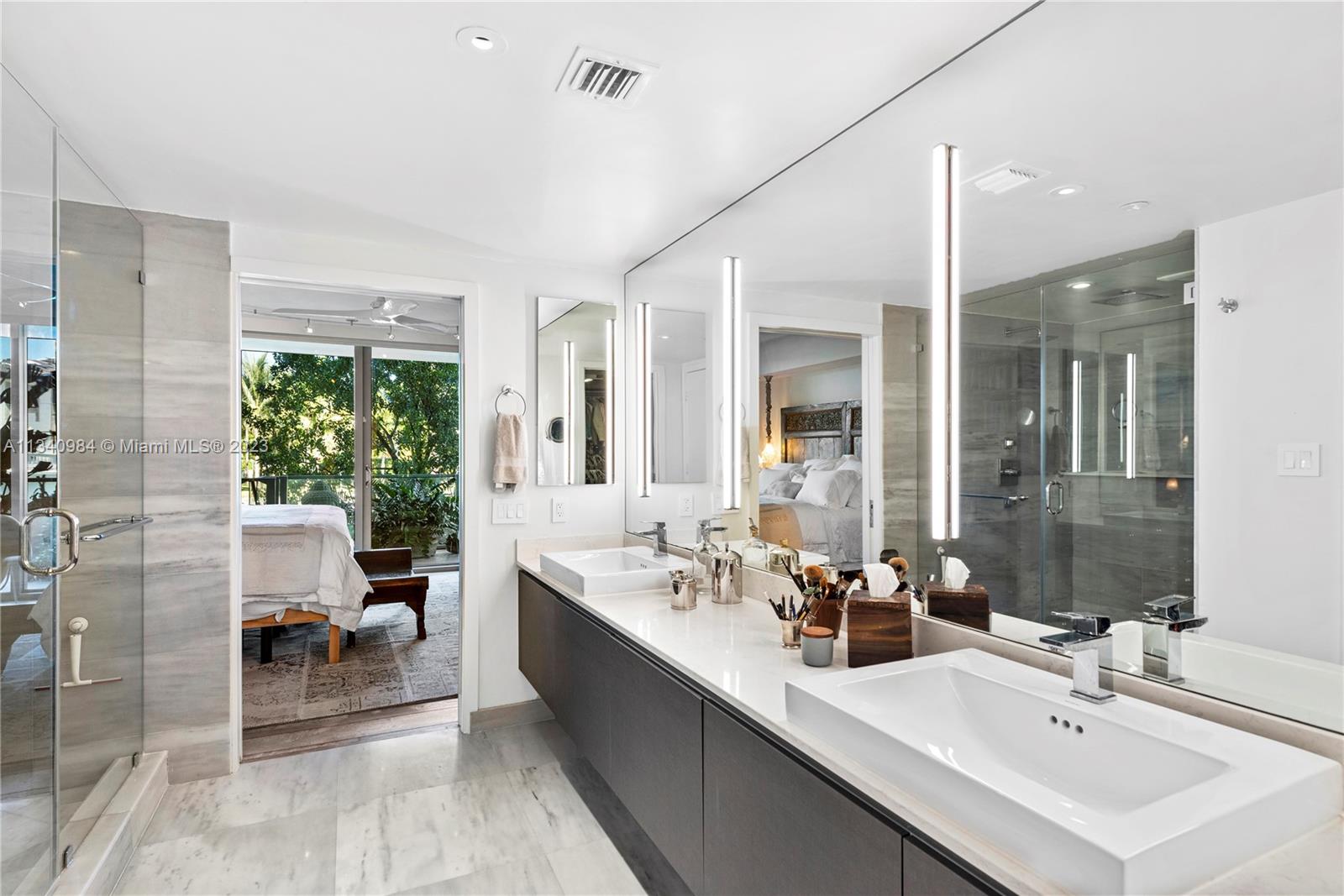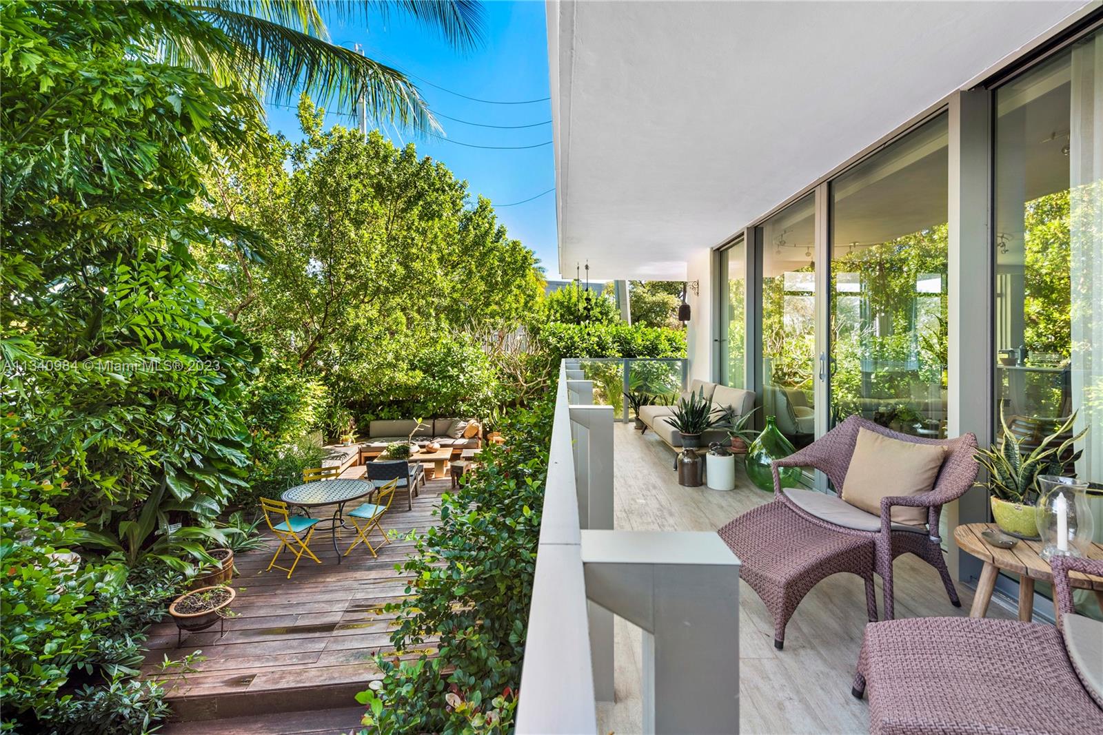 Rare, truly One of a Kind. Waterfront corner, Lanai unit at Sunset Harbour's premier address. A natural 3 bedroom that’s been transformed into a 2 bed but easy to revert. Tax Roll says 1,820 interior SF but measures larger. Architect owned with Duchateau Wood Floors, Italkraft Kitchen, Wolf, and Subzero Appliances. House ‘feel” with a useable covered 425sf Balcony AND step down to your own additional private 1,455 additional SF of beautifully landscaped private yard /garden with a Zen Plunge Pool. Full-service building, Library, Full Gym, 24-hour concierge, and 24-hour Valet.  Best walkable neighborhood in South Beach, Award Winning restaurants, Fitness, and Shopping. Deeded Boat Slip, 30 + feet available valued at $350,000 (NOT in list price), but available.