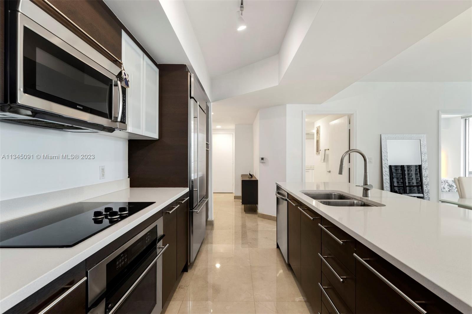 Spacious Luxury Apartment in the most desirable part of Miami's Brickell neighborhood, featuring stunning water views where the Miami River meets Biscayne Bay. The apartment features two bedrooms, and two full-bathrooms, each with double vanity appointments, along with marble floors, an oversized balcony stretching the entire width of the apartment, and accessible from all rooms, and an open floor plan ideal for entertaining. Enjoy prime, unobstructed water views from all rooms, and assigned parking. Amenities: 42-floor Rooftop-Pool with views to Miami Beach, 11th floor rooftop pool, gym, and spa with sauna, steam room and jacuzzi Media and Sports Rooms. Walking Distance to the top shopping, dining and nightlife in Brickell. 10 min to MIA and Miami Beach. ** New Washer & Dryer**