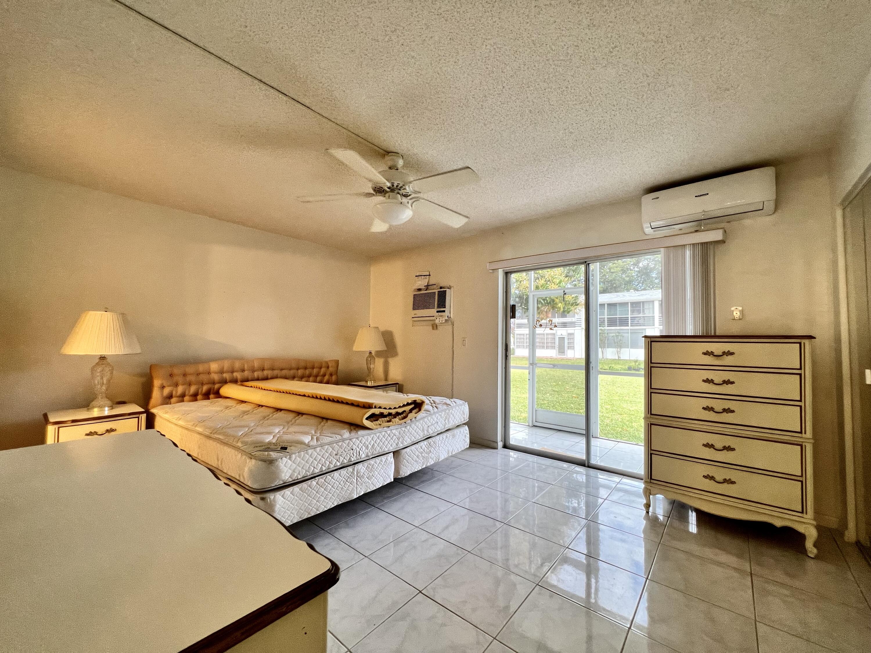 Fabulous Location & Popular Floor Plan in 55+ Century Village! FIRST FLOOR 1/1.5 located close to the Main Clubhouse and Somerset Pool! Lovingly maintained with wonderful features. Neutral tile flooring throughout. Large bedroom suite with full ensuite bath with step-in shower, wall of closets, and access to the lanai. Bedroom has a newer split ac. Screened lanai with lovely garden view and spacious storage closet. Accordion shutters front & back. Pretty resident patio. Sold AS IS & Furnished. Century Village is a 55+ community with so much to offer...