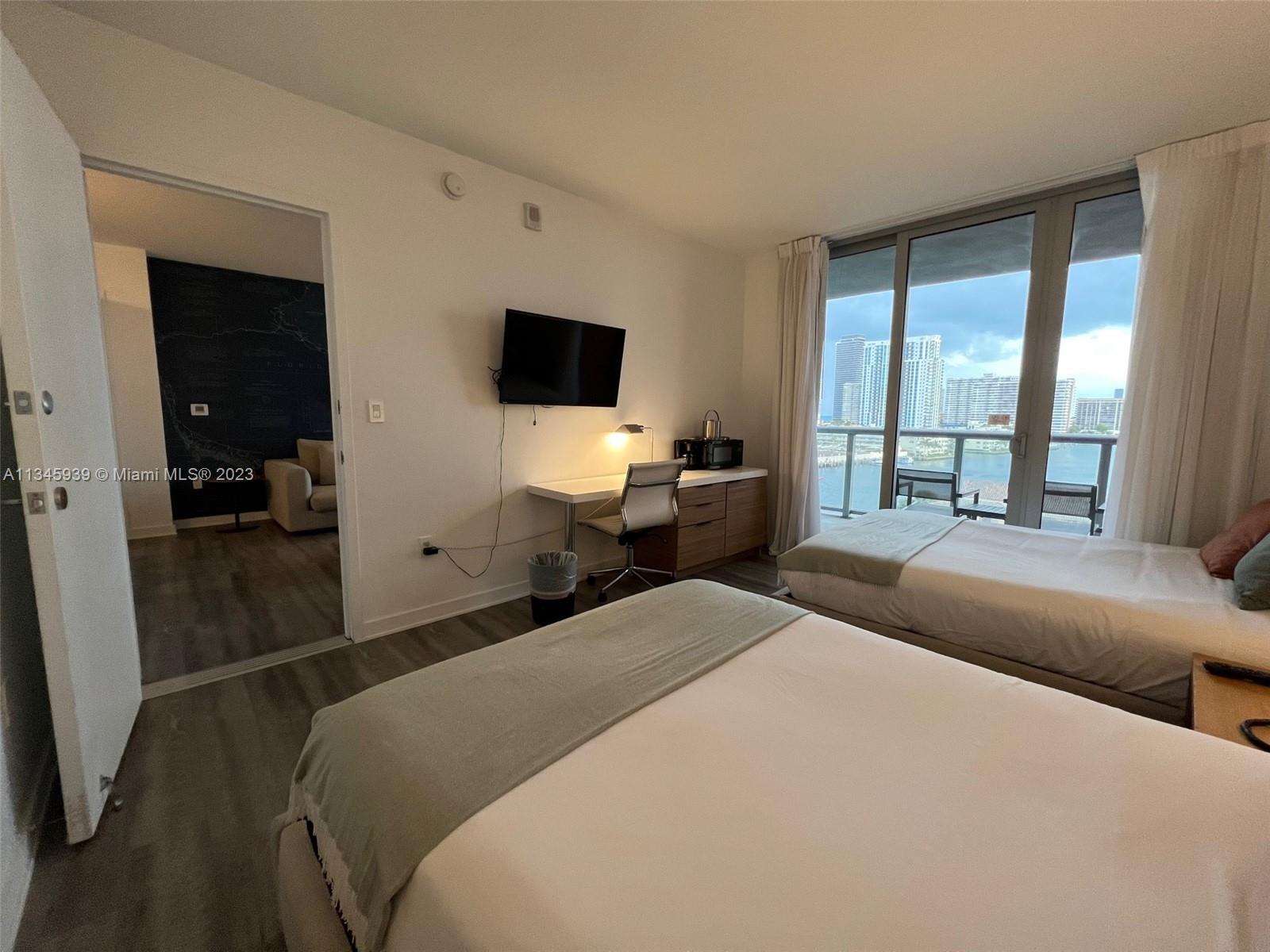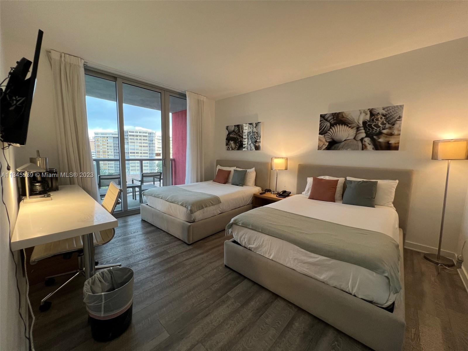 2Bed/2Bath At The Beachwalk Resort with Amazing Views. Totally Furnished Property is composed of 2 units in 1 as 803A & 803B(803A one Bedroom Suite Containing a Large Kitchen W/ SS Appliances, washer, and dryer, Wood Cabinets & Dining Table. Living With Couch & TV. Large King Bedroom Suite W/Walk-In Closet & Updated Bath. Balcony Access From Both Living & Bedroom and Tile Floor)&(803 B has two Double Beds, Walk-In Closet And Desk Area w/small refrigerator and microwave, Additional Balcony & Updated Bath With Frameless Shower Enclosure)Rooftop & Waterfront Pool, Gym, complimentary shuttle to the beach. Income from the first day, NO RESTRICTIONS, can be rented Daily by AIRBNB, BOOKING, VRBO, EXPEDIA, ETC. HOA Included Power, Wifi, Cable, Water & Bldg Insurance. Porcelain Floor and Vinyl.