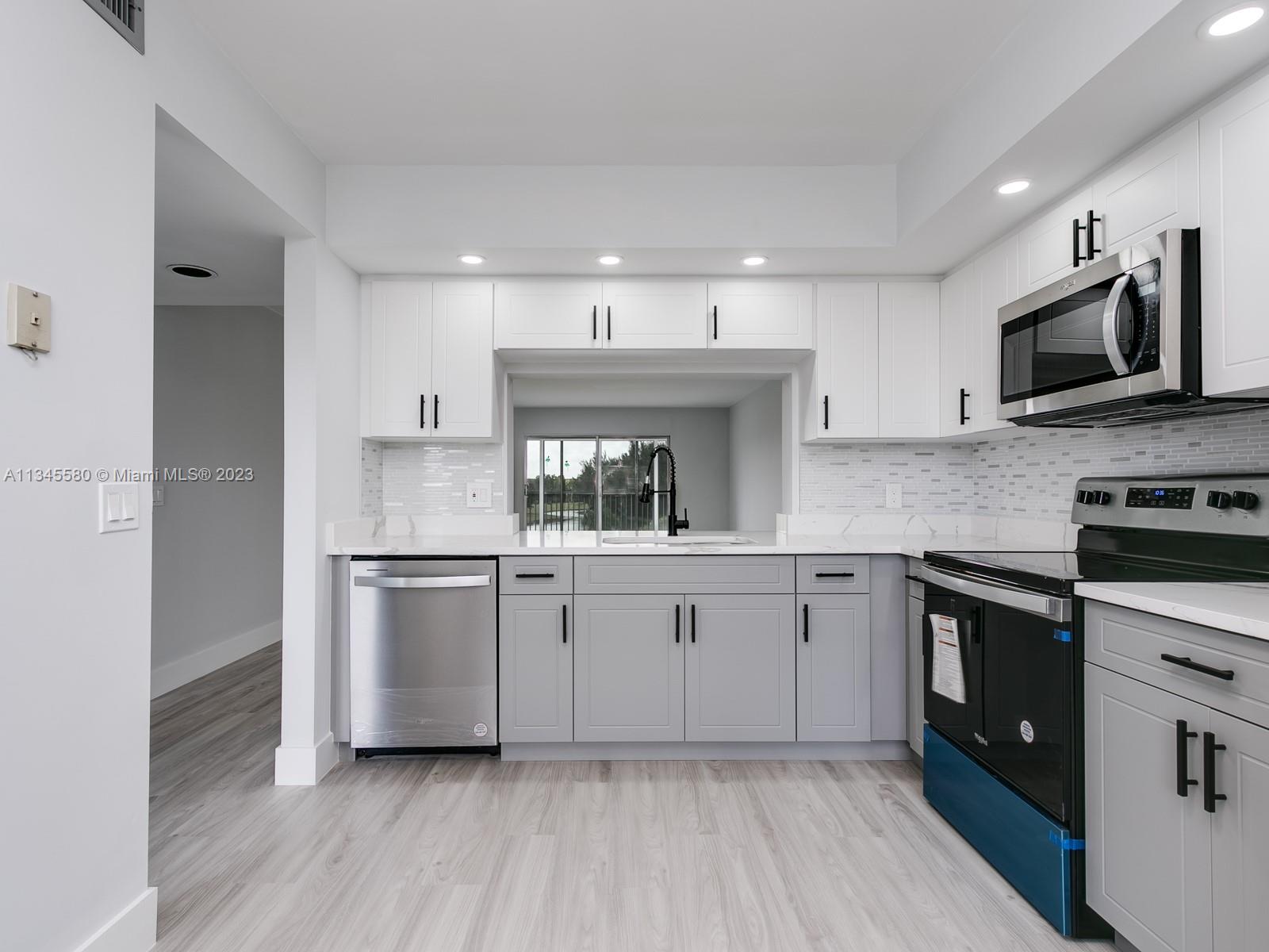 Renovated unit. Spacious 2 bedrooms, 2 baths. Beautiful Golf Course and Lake view. Jasmine model with huge walk-in closet in the primary bedroom. Washer and Dryer inside the unit. New kitchen cabinets and countertop. New vinyl floors. New water heater. New bathrooms cabinets and much more. Access to many pools, tennis and an amazing clubhouse with a theater, and an indoor heated pool as well as places to worship on site, and tons of activities. Located in Buckingham East in Building N at Century Village, which is an over 55+ adult community in Pembroke Pines. Located nearby Pembroke gardens entertainment Center with many nice restaurants and shopping. Close to I-75 expressway and Healthcare.