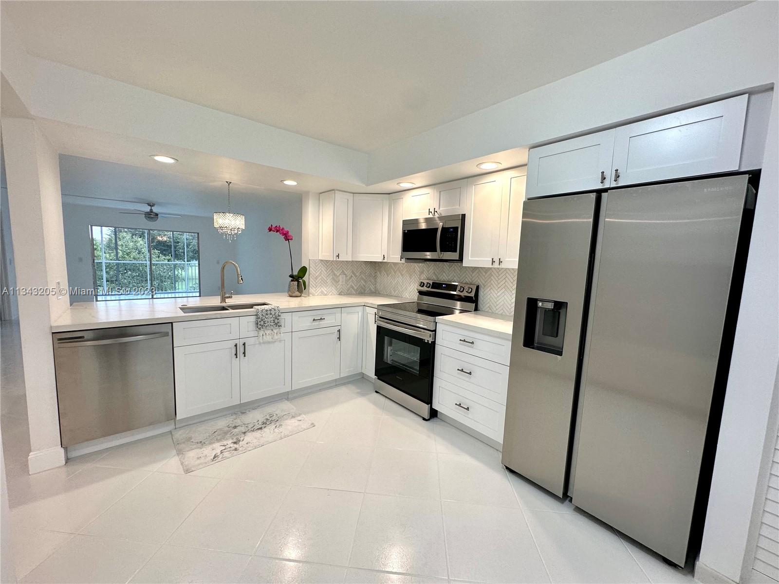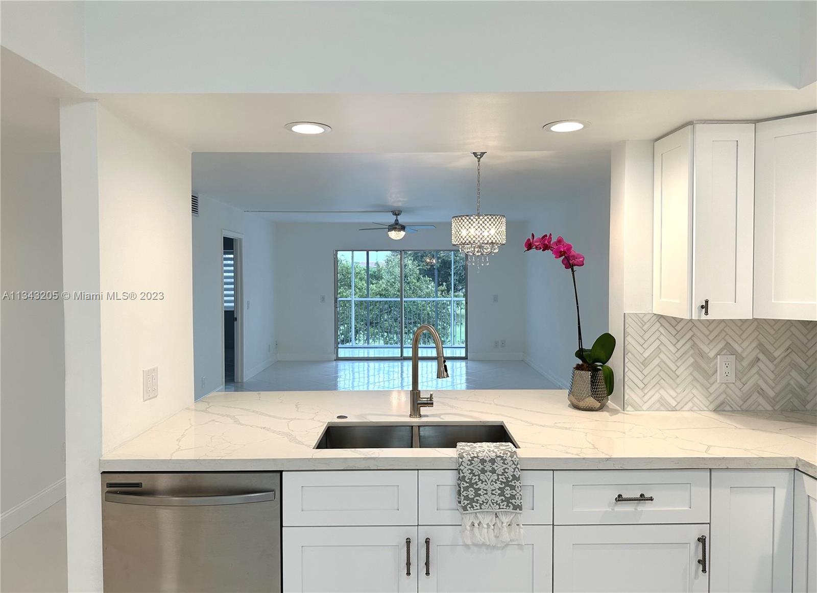 Completely remodeled bright, spacious, and quiet 2/2 in Century Village with large open or screened in balcony with third floor water and golf course views. New kitchen with quartz finishes, New Stainless appliances, New Bathrooms with quartz finishes, New washer and dryer, New elevator. Master suite has a large walk-in closet. Located in active resort style 55+ community that offers 24/7 security, golf, tennis, pickle ball, billiards, dances, gym, walking/bike trails, pharmacy, and more. Courtesy shuttles offered and conveniently located near shopping, restaurants, hospital, and major roadways. Cable, Internet, water, trash included in Maintenance Fees. HOA requires 650 credit score. Unit can be rented immediately with potential rental income of $2500.