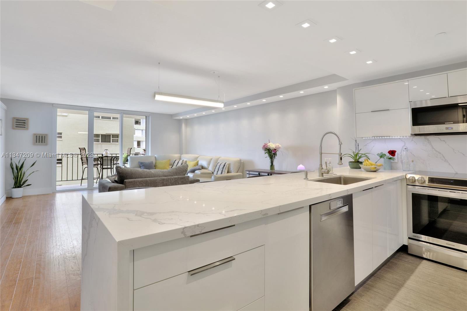 Live your Dream on the beach in this 1-bedroom/1 and half bath. Complete modern renovation. Ready to move in. RESORT STYLE LIVING ON THE BEACH! Open kitchen design w/quartz countertops. High-end professional appliances. LED recessed lights & more. Stone tile throughout the kitchen and bathrooms., Hardwood floors in bedroom. Built in Murphy bed for added guest convenience. Modern bathroom w/ clean lines & upgraded lighting. Closets feature contemporary chrome hardware & full system for maximum storage options. Hurricane Impact Windows. Internet and Cable TV is include in dues. The building has full reserves and has passed the 50-year recent inspection. PET FRIENDLY. Two pet any size are welcome. Make this your new home or winter gateway when not in use, rent it out! Rent Immediately.