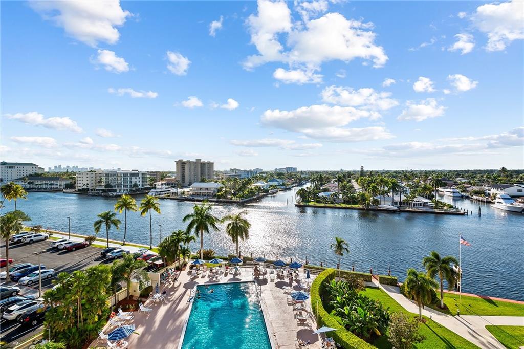 It's all about the views! You will be thrilled when you walk into this unit and realize that the Intracoastal is visible from EVERY room. The kitchen has been renovated and has ample countertops for food preparation and cabinets for storage. Designed by an avid cook and hostess, the wall remains intact to hide dirty pots and pans from the view of guests. Tile floors throughout except in the bedrooms where cozy carpet greets your toes in the morning. High-impact large-pane windows throughout and ample closet space. The unit is offered furnished but can be unfurnished as well. Conveniently located within walking distance of stores, shops, and the beach. Don't miss your opportunity to own a beautiful home on the Fort Lauderdale Intracoastal.