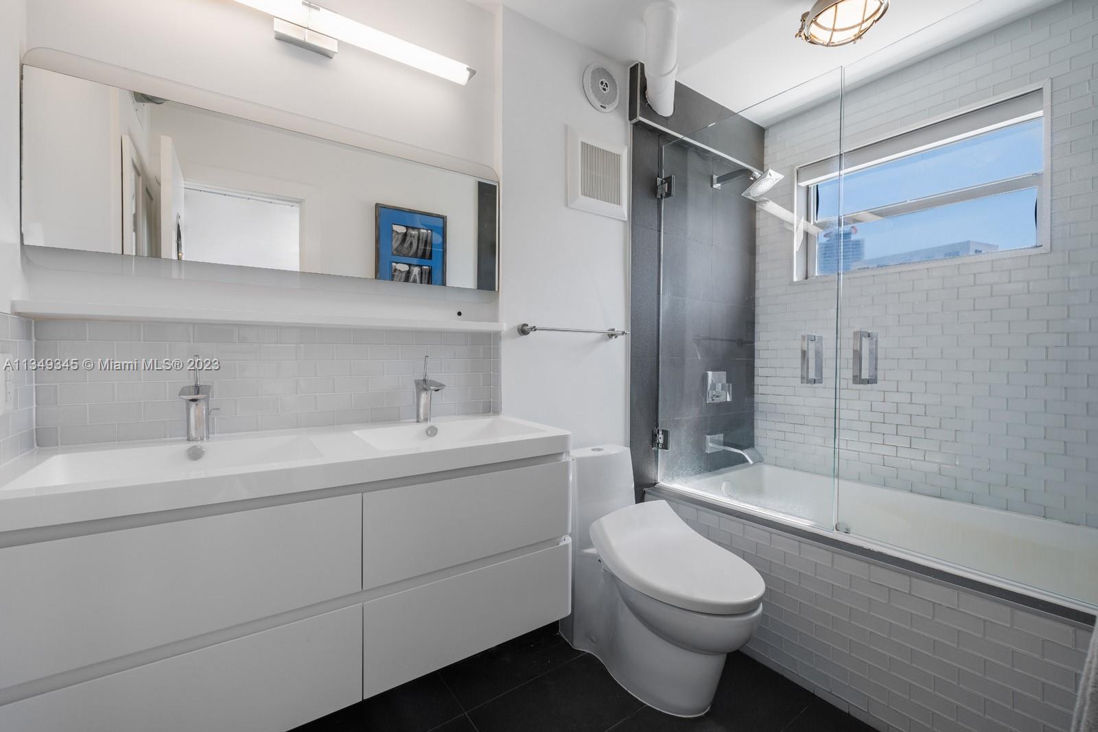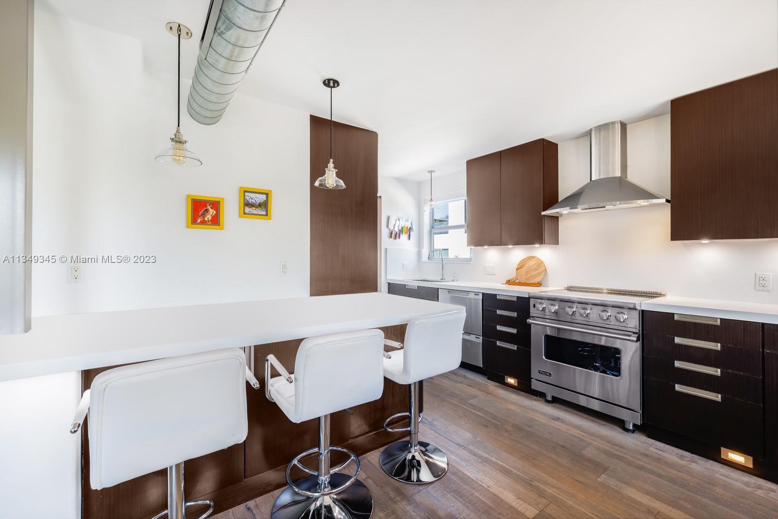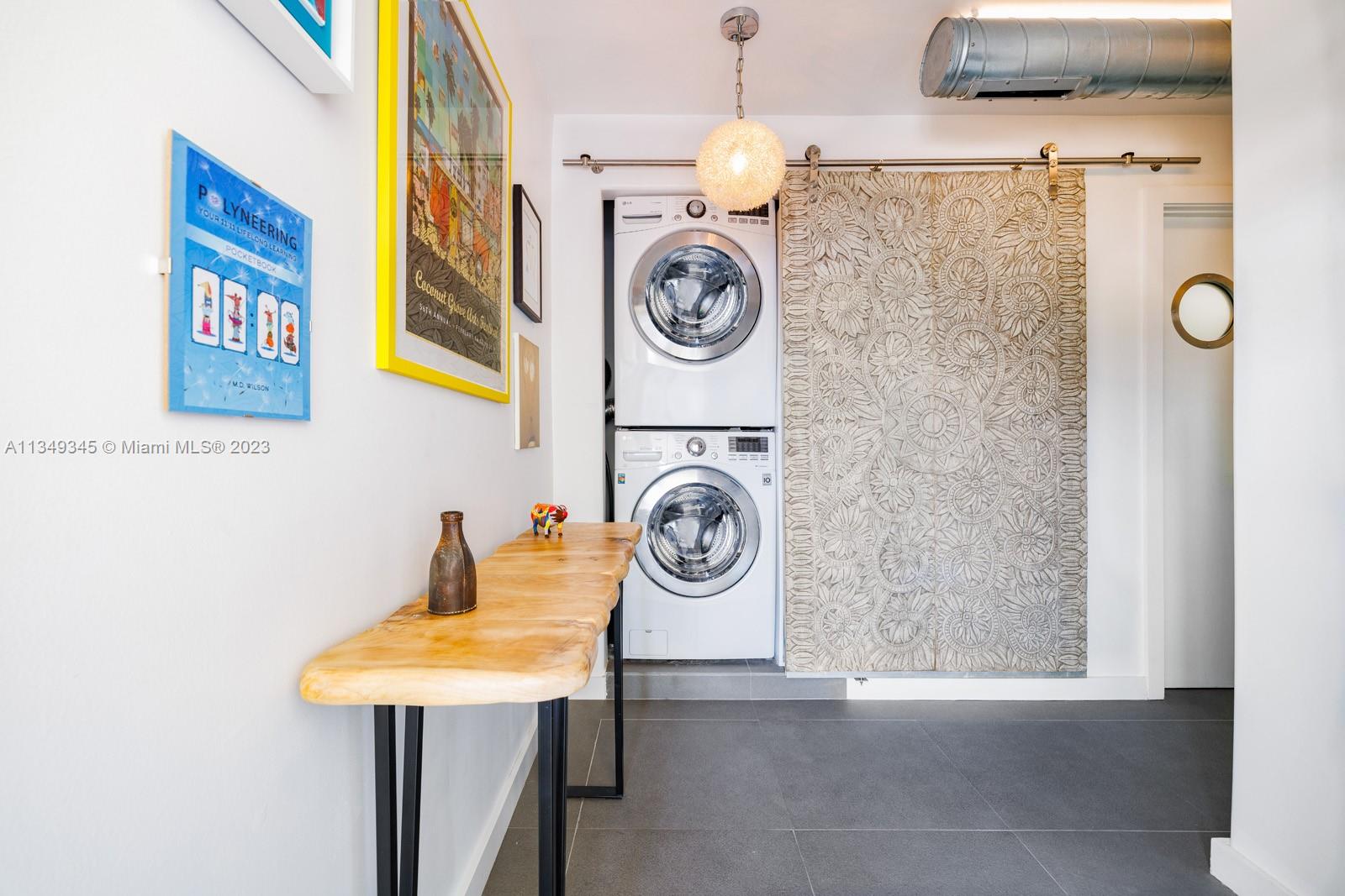 Boutique, industrial-modern renovated 2 bed / 2 bath corner unit with large balcony overlooking the park. Only two blocks to the beach and in the heart of the SOFI neighborhood of high end shops/restaurants. Chef's kitchen with dual sinks, Viking oven, Fisher & Paykel dual dishwashers, new bar ice maker, and new drawer microwave. Hurricane impact windows/doors, washer/dryer and a new tankless water heater. High-end jacuzzi hydro tub and both baths with remote bidet systems. Condo has 16 units in the building and a secured parking space. The imported tongue-and-groove reclaimed hardwood floors and well appointed furnishings make this a rare find in Southpointe's South Beach area.