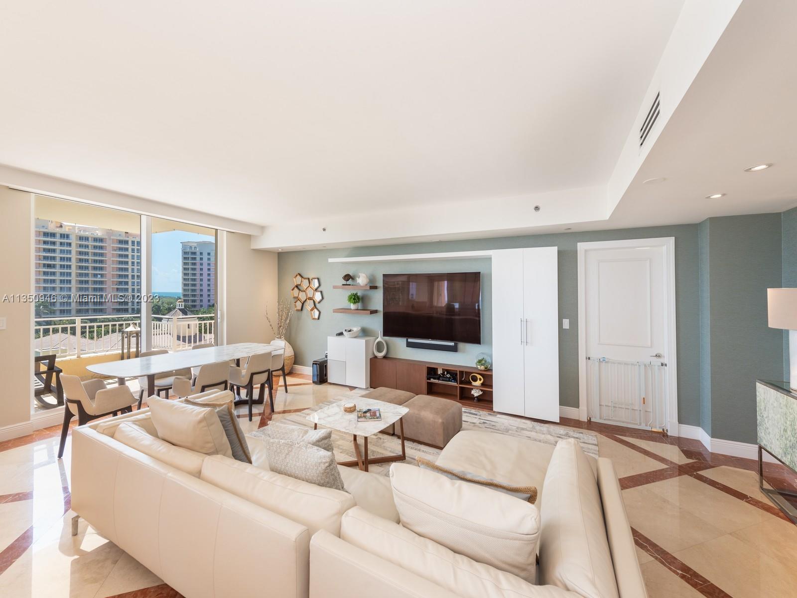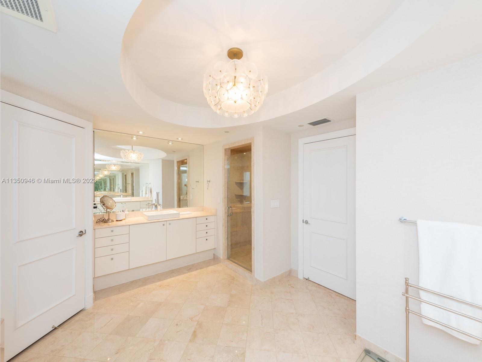 Beachfront house in the sky – The largest model apartment at Ocean Club **** 5,207 sq.ft. of luxurious space, was remodeled and redesigned by Adriana Hoyos in 2018. Step out of your private elevator and enter your own grand foyer. Be in awe with the panoramic views of sky and beach that surround you. This 4 bedroom en-suite plus staff quarters, 5 bath plus powder room, plus ocean facing office/den, and wrap around terraces, and four garage spaces (one is a tandem) is in a stack that has its own private concierge, fur storage room and its own wine cellar, all for your added convenience. Ocean Club features three restaurants, Spa, round the clock security, and all amenities expected in a world class resort. Easy to show.