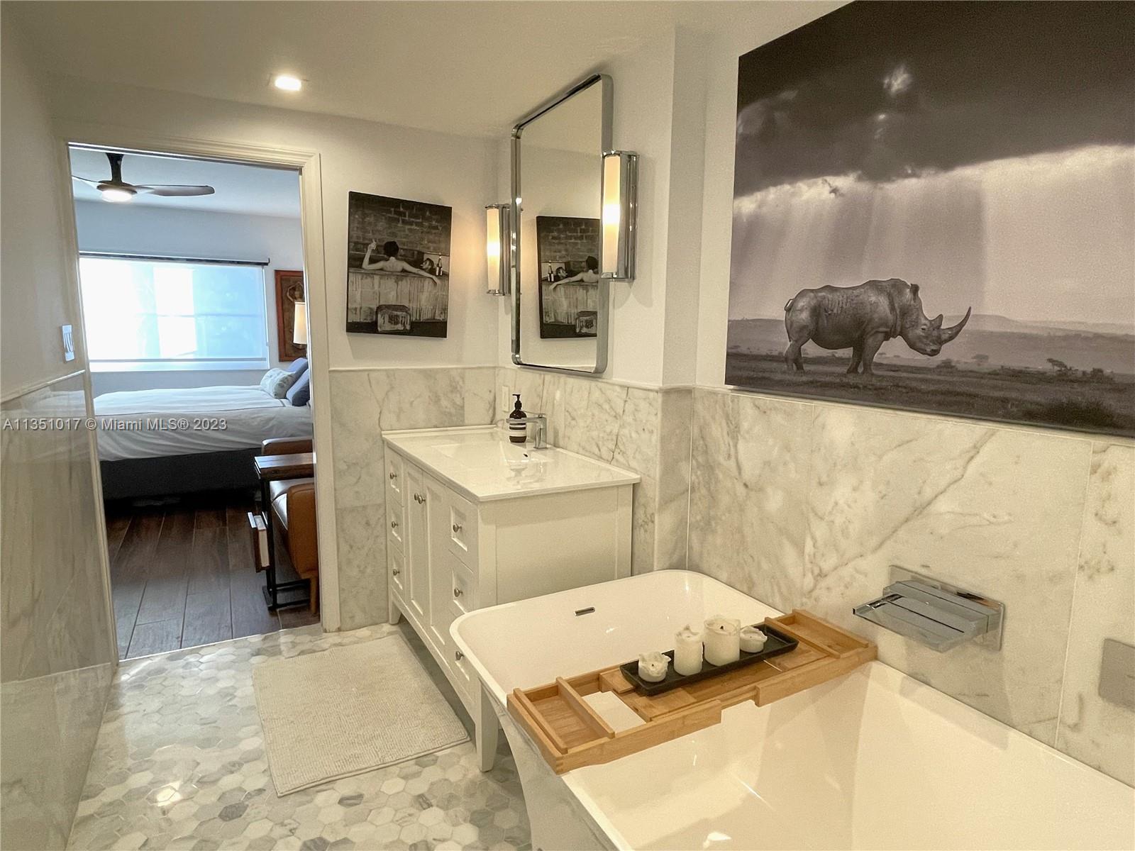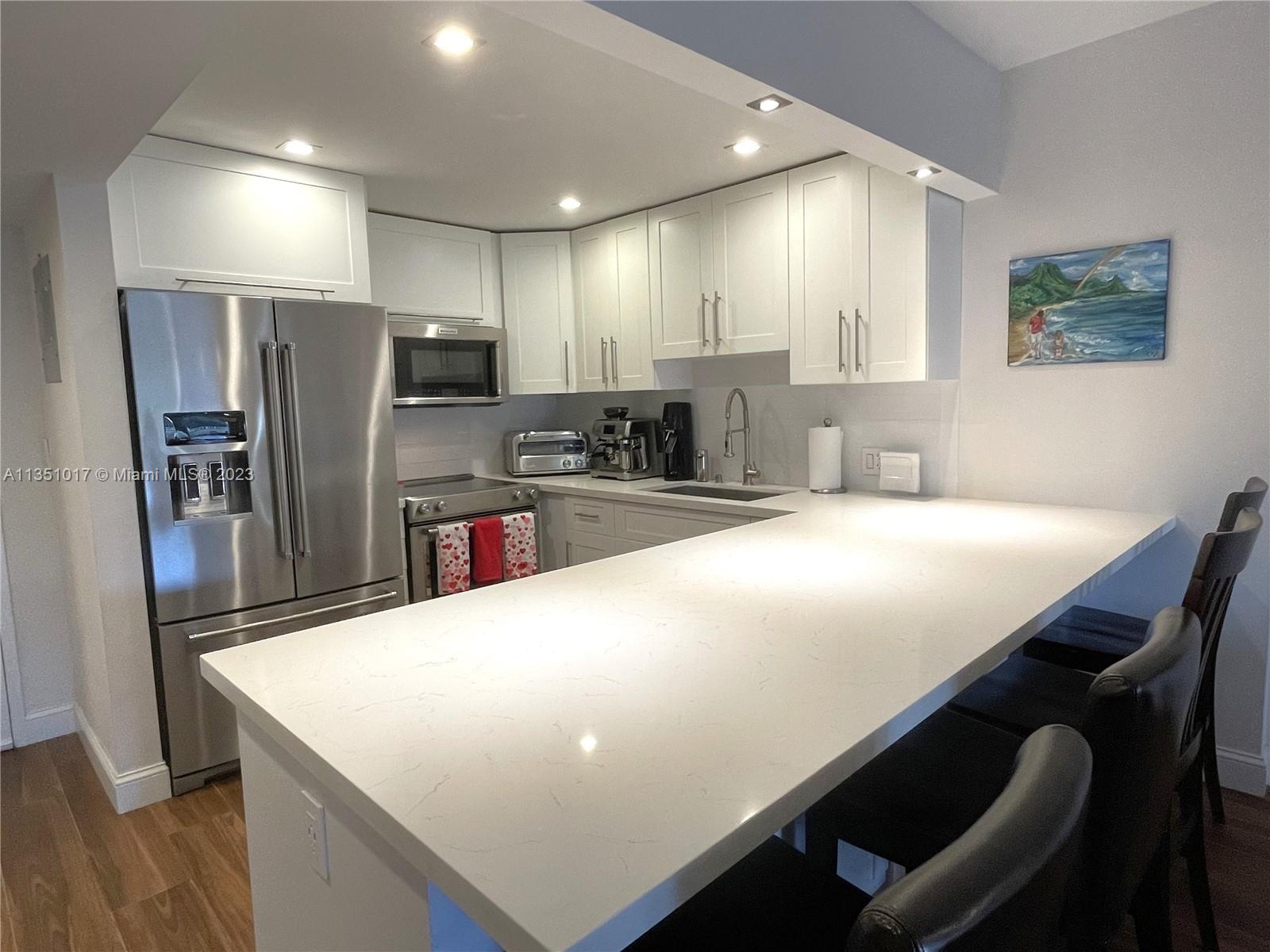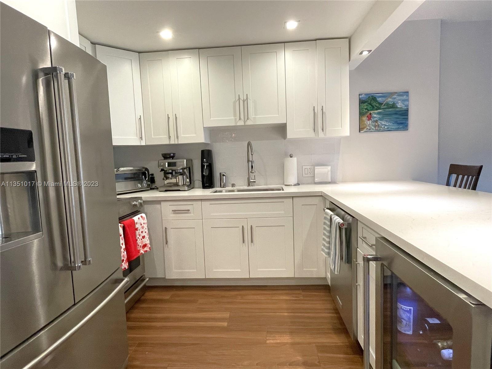 Completely updated water facing 1 bedroom + office nook / 1.5 bathroom residence. Unit looks out towards pool and the waterway. Waterfront building with no bridges to bay. No expense was spared on this condo. Hurricane impact windows, electric blinds, quartz countertops, SS appliances, wine cooler, porcelain wood flooring, standing shower with overhead waterfall and full size tub, heated towel racks, walk-in closet. Tranquil Edgewater Dr building with relaxing heated pool overlooking the waterway. Rent/Buy a boat slip, when available, and keep your boat at home. 1 assigned parking space + 1 storage cubby included with sale. 50 Year Recertification has been completed.