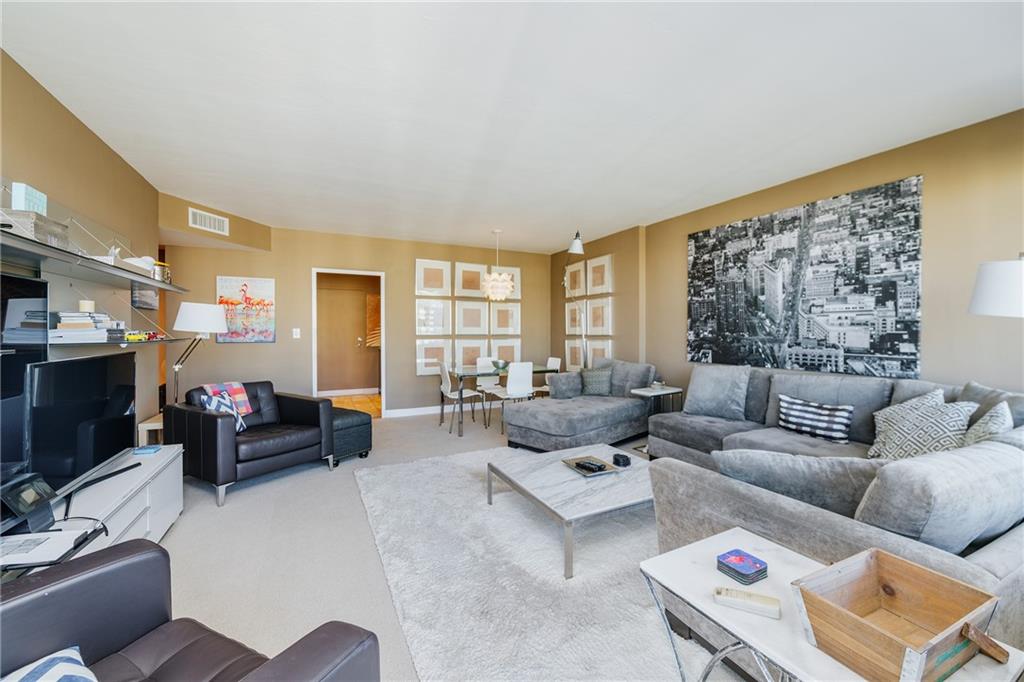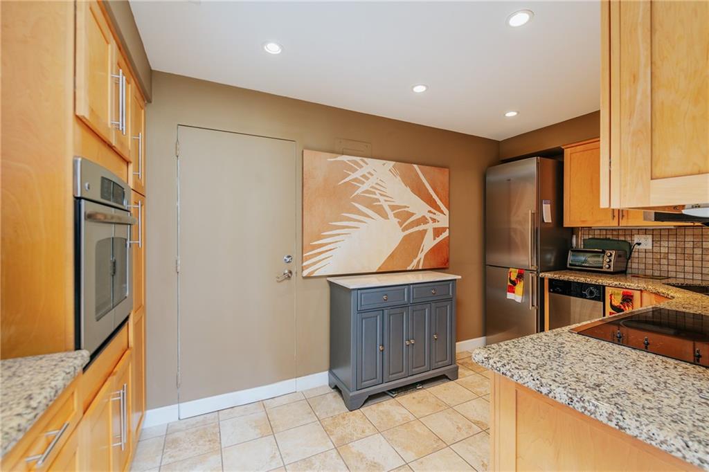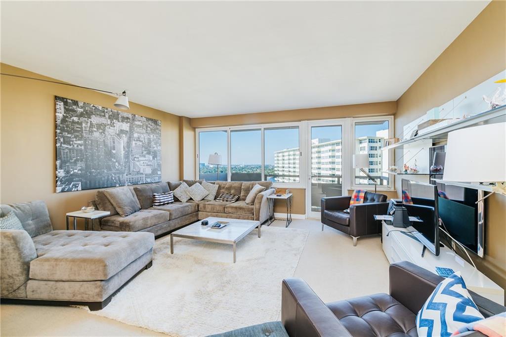 Enjoy sweeping views from the Intracoastal to the ocean with this hidden gem. This move in ready home features an updated kitchen with newer cabinetry and granite counters, and a modernized bathroom with a walk in shower. This home also for hurricane impact windows, and central AC for added peace of mind. Coral Ridge Towers offers all the conveniences of beachside community living, with the peace of mind of 24/7 security and full service professional onsite management. This 55+ Co-Op community is located on the barrier island with the beach, grocery stores and a variety of great restaurants within walking distance. The building offers an array of amenities including a heated pool surrounded by lush tropical landscaping, gym, and more.