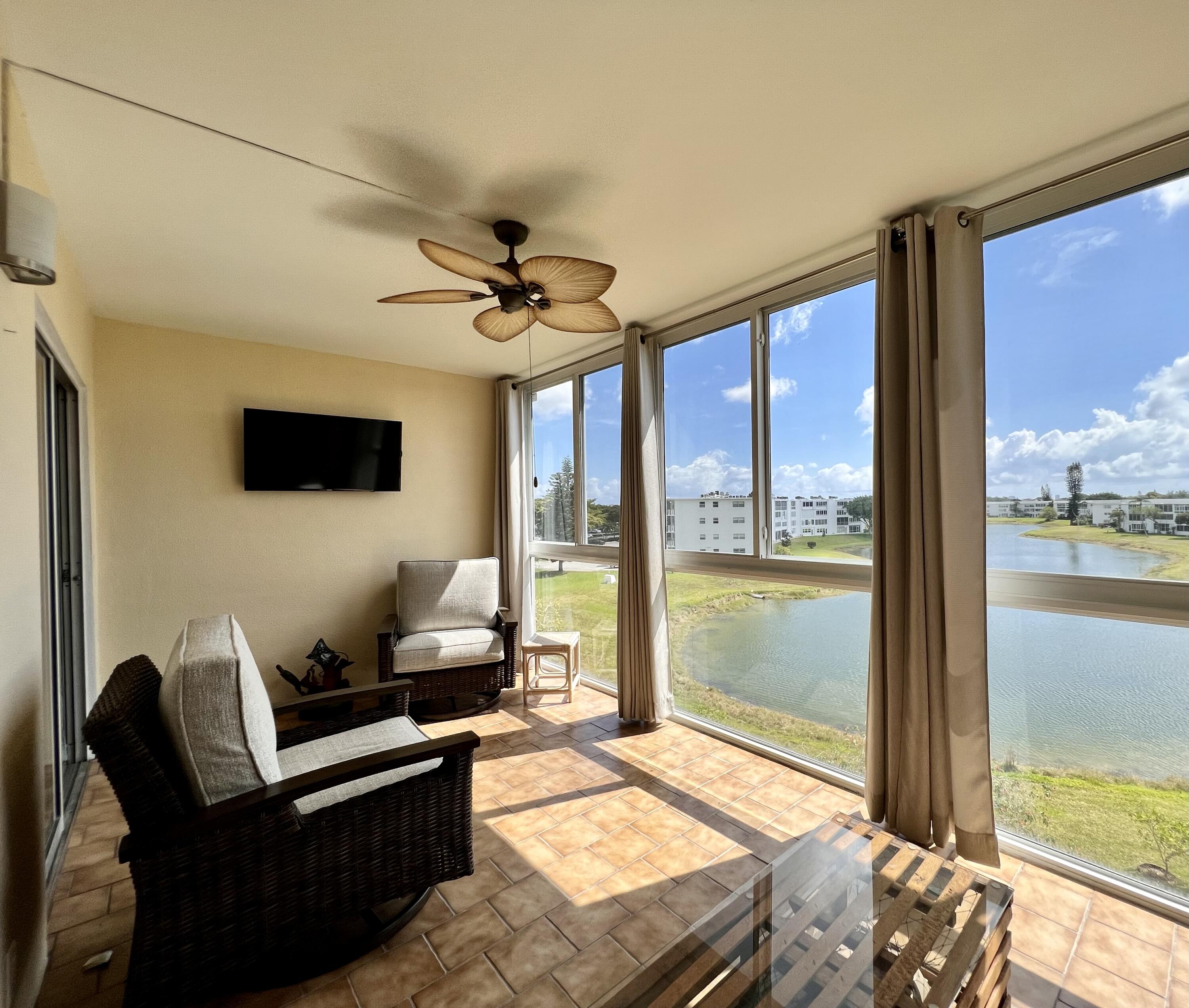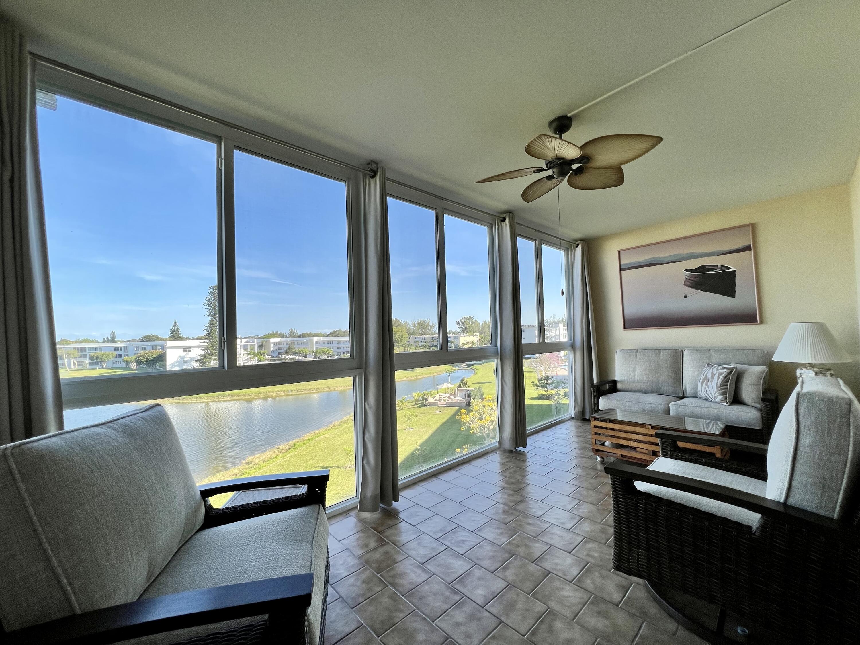 SWEEPING LONG WATER VIEWS! BEAUTIFULLY UPDATED & IMPECCABLY MAINTAINED SPACIOUS 2/2 PENTHOUSE CONDO IN 55+ CENTURY VILLAGE! Take in the Views from the Enclosed Lanai with Floor to Ceiling Impact Windows. Gorgeous Updated & Open Kitchen With White Kraftmaid Cabinets, Glass Subway Tile Backsplash, Stainless Appliances, and High Hat Lights. Large Bedroom Suite With Water Views, Updated Full Ensuite Bath, Walk-in Closet with Closet System, and Access to the Enclosed Lanai. Guest Room/ Den with Water Views. Updated Guest Bath. Tile Flooring Throughout. Impact Windows front & back. Accordion Shutters on Front for Extra Protection. Sold As Is and Partially Furnished As Shown with Lightly Used Quality Furnishings. Century Village is a 55+ community with so much to offer.