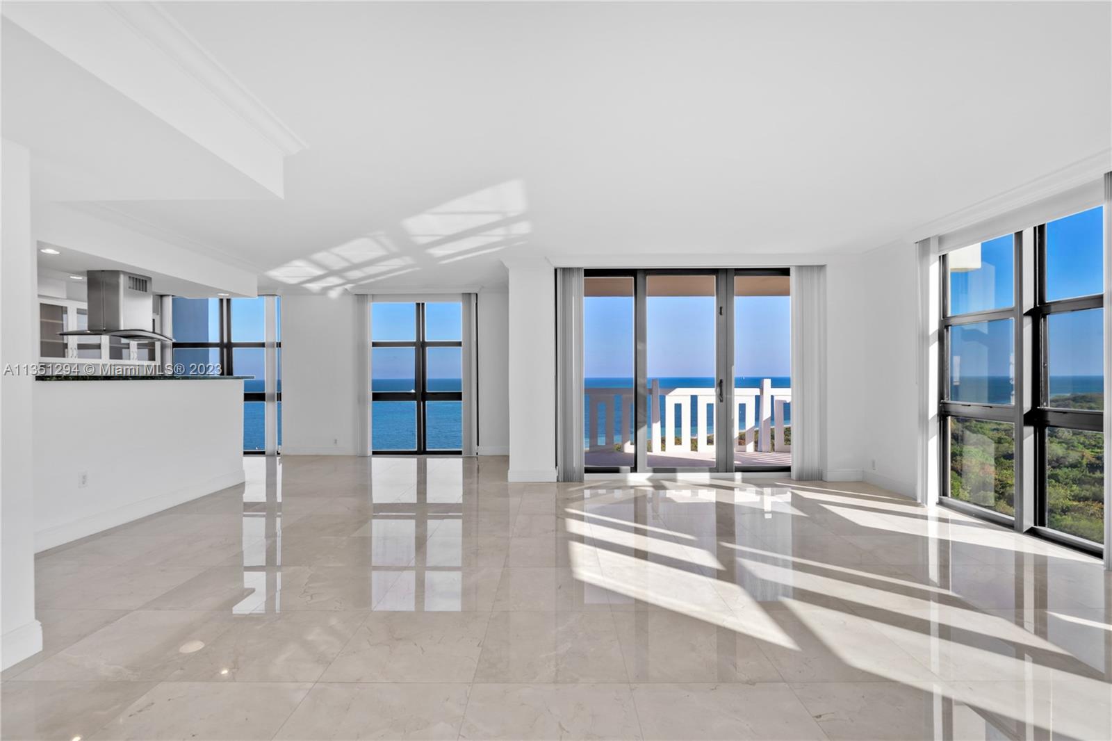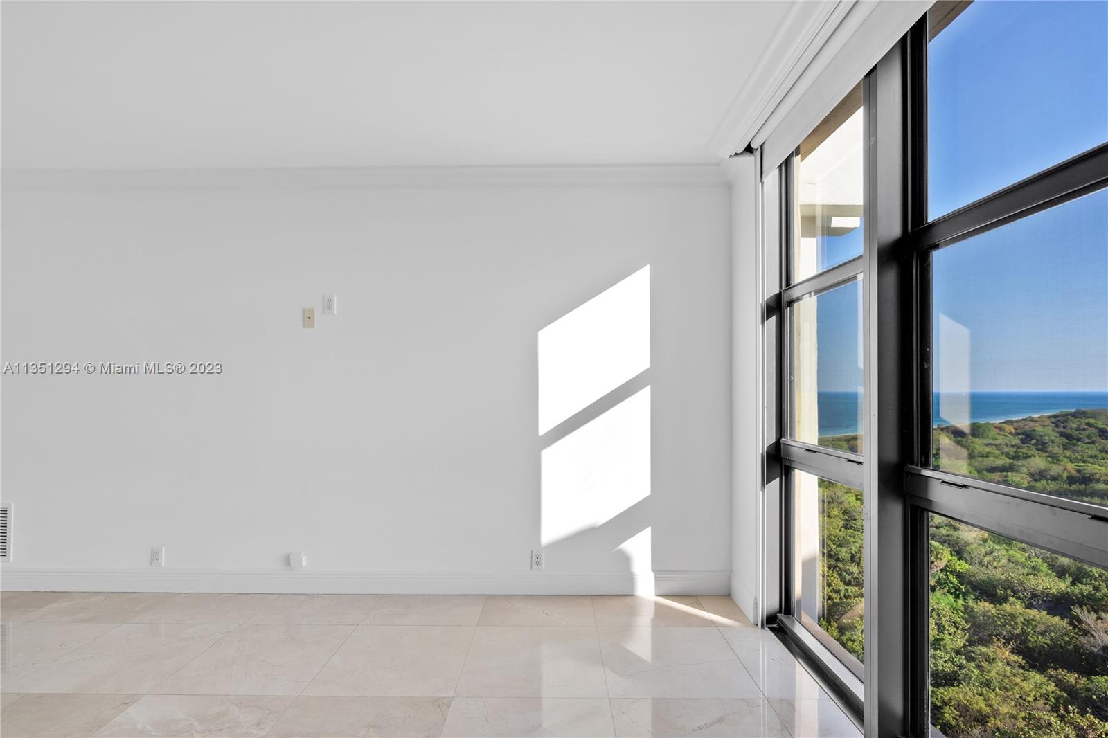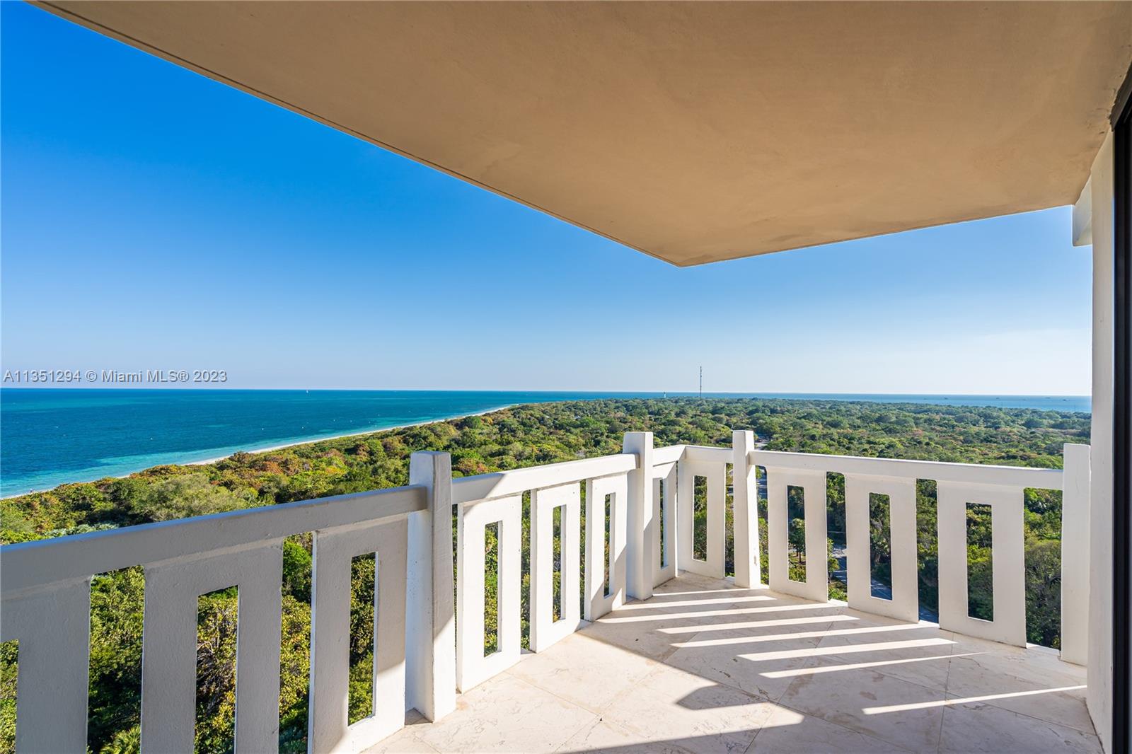 Prime south-facing, corner-penthouse residence with sweeping views of the beach, Bill Baggs State Park, and Biscayne Bay is a fitting place to enjoy incredible sunsets. Renovated with marble floors throughout, open kitchen, ample bedrooms, and baths. Master BH features a double sink, large tub, separate shower. His and her walk-in closets. Resort-type building with direct beach access; gym, barbecue, card room and restaurant. Located next to the State Park. A pleasure to show!