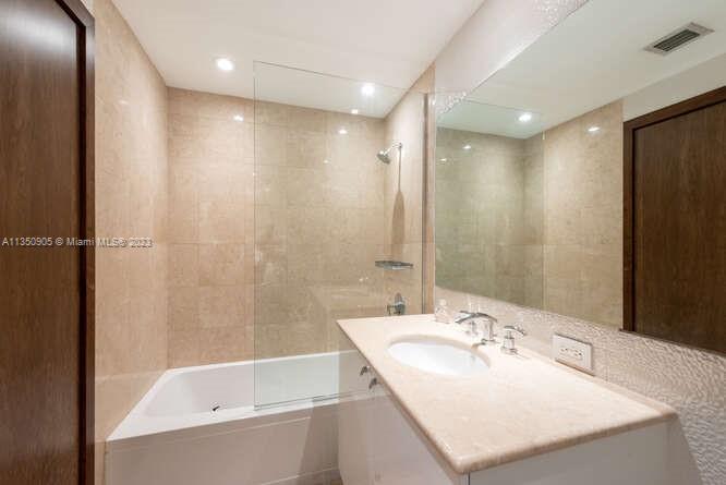 Stunning views to the bay and ocean from this exclusive 3 beds/2.5 baths apartment. Ample balcony to enjoy dinner/breakfast with breath taking sunrises/sunsets. Marble floors throughout. Remodeled kitchen with eating area & Italian cherrywood cabinetry, stainless steel top of the line appliances including a wine cooler, full washer/dryer & custom-made closets. Master bath with a whirlpool & separate shower. 1 assigned parking space. Racquetball, infinity 30-meter pool with stunning views to the bay, sitting area, playground area, party room, concierge, security, 24-hr valet and bike storage. Brickell Key is and exclusive island oasis near shopping centers and restaurants.