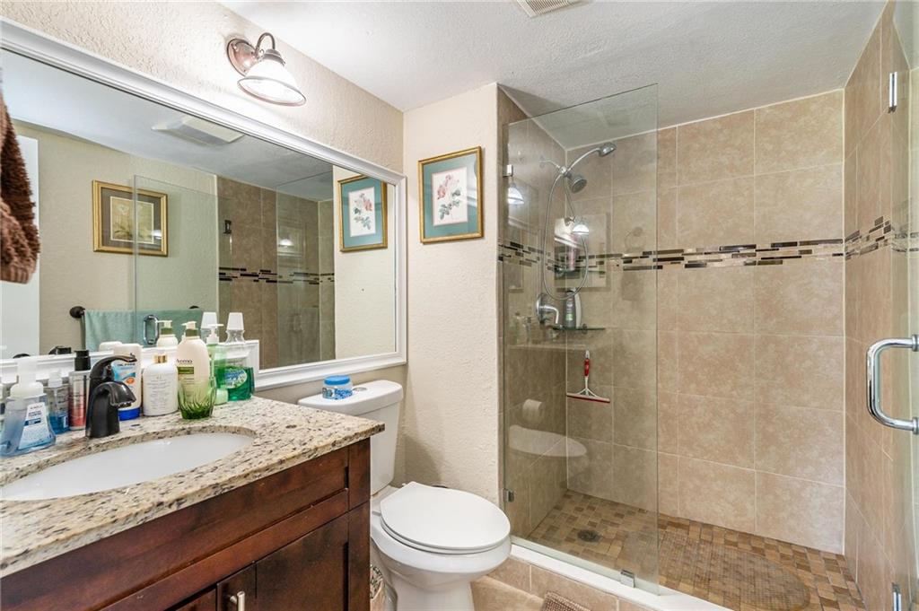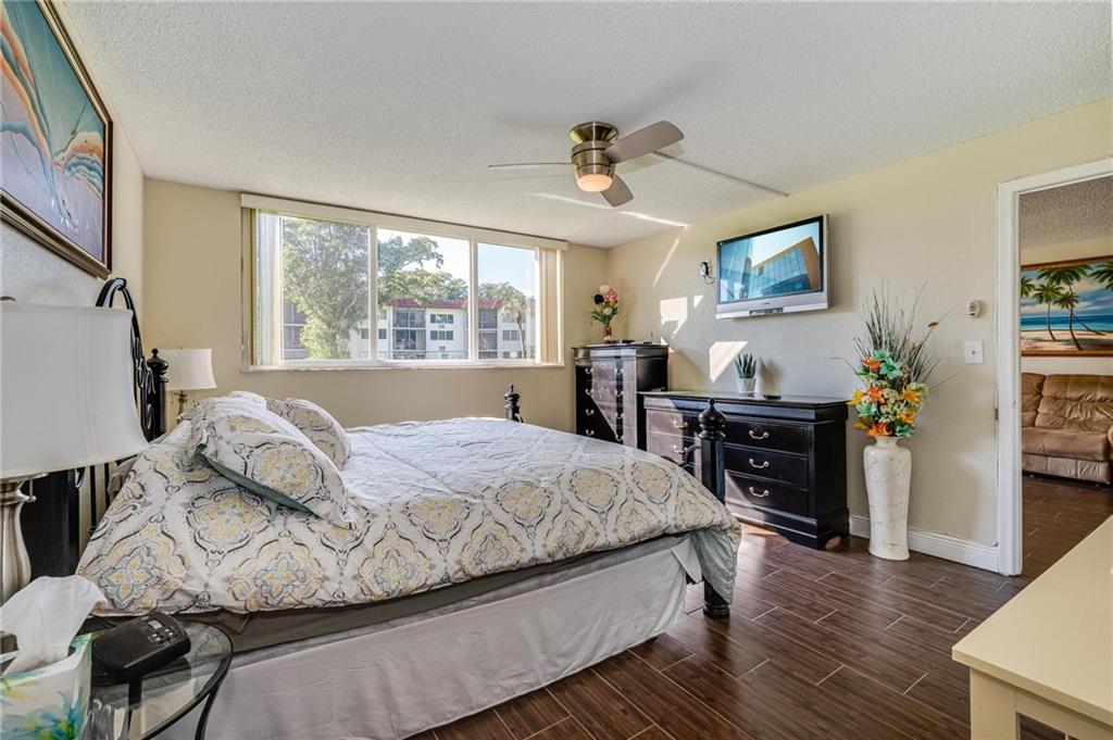 FULL & BEAUTIFULLY UPATED 1ST FLOOR, 2BR/2BA ON QUIET DEAD-END STREET. Par 3 10th green view. Rich Tile throughout! Both Bathrooms fully updated. Spacious Kitchen w/ high ceiling, SS Appliances and granite counters. Both closets with full storage systems. IMPACT WINDOWS. OPEN enclosed patio inside & brick pavers outside. 24 hr guard gated. Recreation Lease PAID IN FULL! FREE golf (except cart fees) on two 18 hole courses (PGA & Par3); Amenities include Restaurant, Billiard Room, Bbq/Picnic Area, Clubhouse, Courtesy Bus, Exercise Room, Heated Pool, Library, Putting Green, Sauna, Shuffleboard, Tennis, Pickle Ball, Vehicle Wash Area, Electric Car Charging Station. Close to shopping, dining & highways. 15 min. to the beach. Association says 55+ age required; FIRST CLASS! MOVE RIGHT IN!