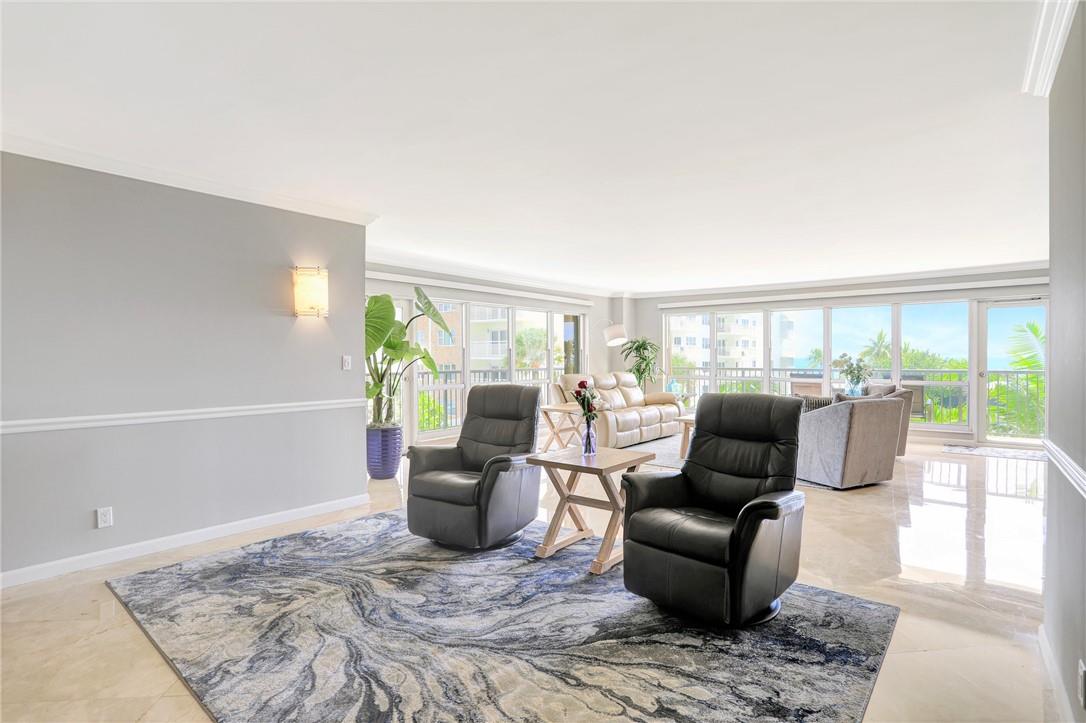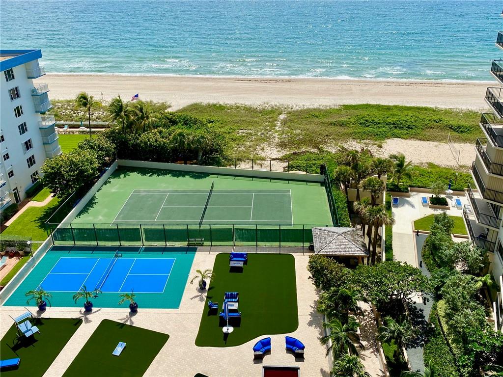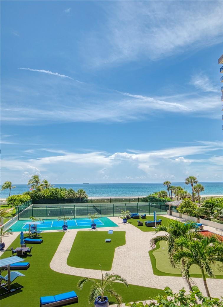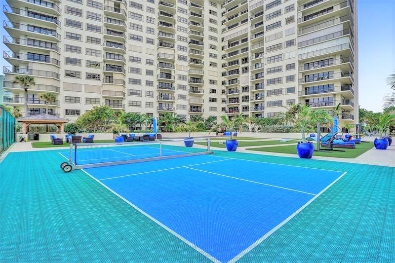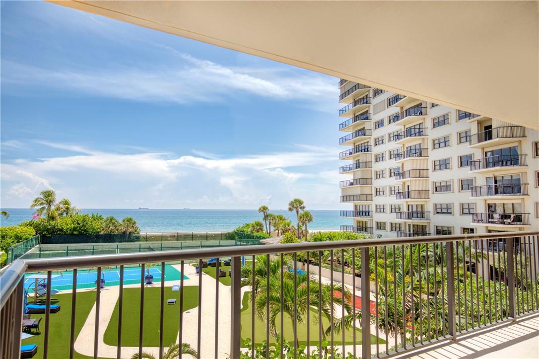 THIS SPECTACULAR CORNER FEELS LIKE A HOME ON THE BEACH!! FLOOR TO CEILING WINDOWS THROUGHT TO ENJOY THE MESMERIZING OCEAN VIEWS. LOW FLOOR TO ENJOY THE TREES & OCEAN SOUNDS. Thru Apt. East/North/West exposure! you will enjoy SUNRISE & SUNSET VIEWS . SEMI-PRIVATE ELEVATOR! WRAP AROUND BALCONY. Luxuriously Large W/2150 SQ FT OF LIVING SPACE. OPEN CONCEPT KITCHEN & QUARTZ COUNTERS. HIGH HATS, MARBLE FLOORS & MORE. 1 GARAGE & PLENTY OF PARKING. Enjoy all the village restaurants & Entertainment & Pompano Pier & Oceanfront restaurants. This is relaxed BEACH RESORT LIFE. Heated pool, tennis, Bocce, Pickle ball, fire pits, Fitness center, BBQ , Sauna & 24 HR Concierge. Pets OK. Lease right away. YouTube link below. A MUST SEE! You wont be disappointed. Easy to show. All Assessments Paid!