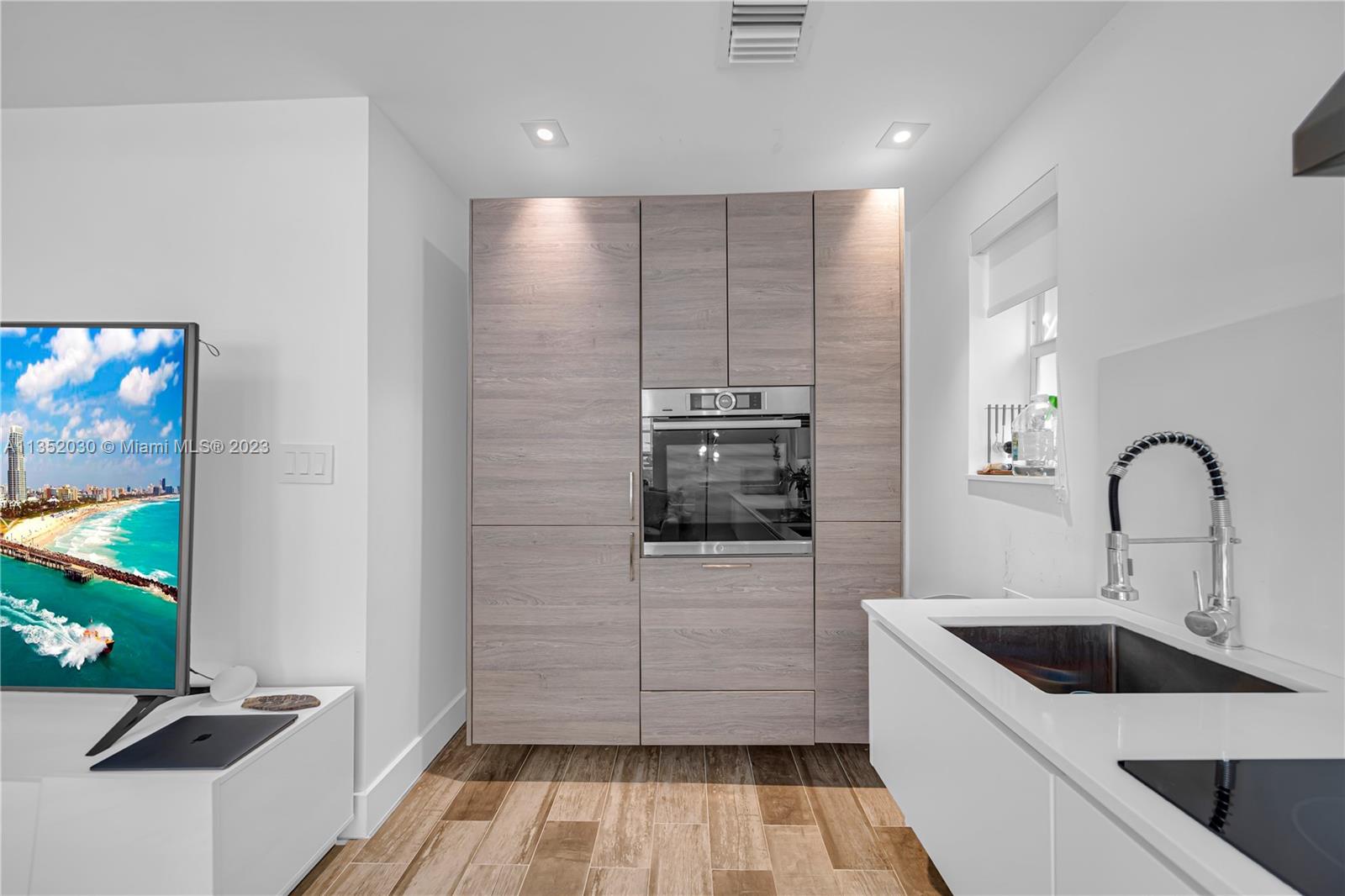REMODELED. Unique two story, 2 bedroom 2.5 baths Townhome. Professionally designed, ALNO kitchen with European appliances featuring built-in refrigerator. Modern bathroom cabinets with high end fixtures.. Fully gated community. Walking distance to main stores and the beach. Furniture is optional and additional to be negotiated