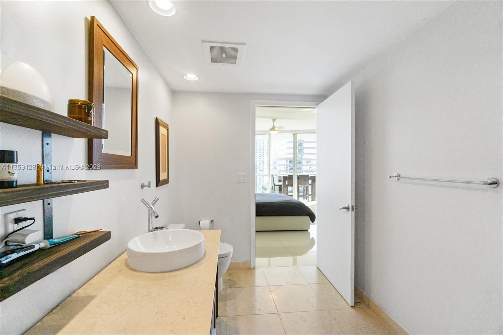 Amazing high floor 1 bed at ICON Brickell! This oversized 1 bed/ 1 bath with 1,035 sqft of interior space has spectacular views of Biscayne Bay and the Brickell skyline. Porcelain floors throughout, an Italian kitchen with Wolf and Subzero appliances. Full service building offers 5 star amenities including multiple pools, water lounge, fitness center, steam & sauna rooms, fully staffed spa and fitness center, movie theater, game room, café with poolside food and beverage service, poolside towel service, concierge and valet parking. Walking distance to Whole Foods, Brickell City Centre and tons of bars & restaurants. AC, Washer and Dryer were all recently replaced.