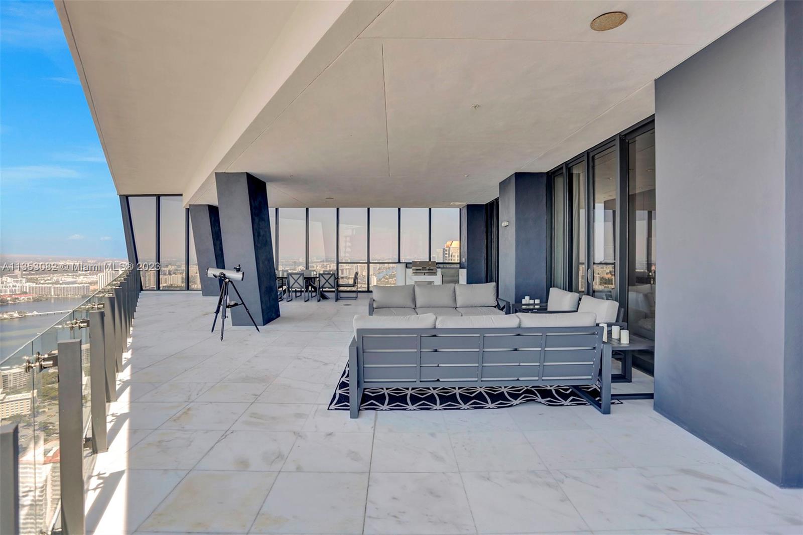 Welcome to a truly unique Boutique Residence of MUSE. High above any neighboring buildings, you may find yourself living in A One-of-a-Kind, Luxury Smart Home on the 47th Fl. Which offers you an unobstructed Panoramic Ocean & Intracoastal views from every room. This 2BR +Den, that can be converted into a 3RD BR, boasts 3 Full Baths. You will find exquisite marble flooring throughout the unit, surrounded by wall of windows along with 12ft. ceilings. Top-of-the-line appliances such as WOLF & Sub-Zero and fixtures Dornbracht & Duravit makes this a remarkable home. Outdoors living consists of a 60ft wide and 36ft deep balcony with a Summer Kitchen for entertaining year round. Enjoy the finest Amenities such as the Infinity Pool & Lounge, Spa, Gym, Beach Service & Resort like Concierge.
