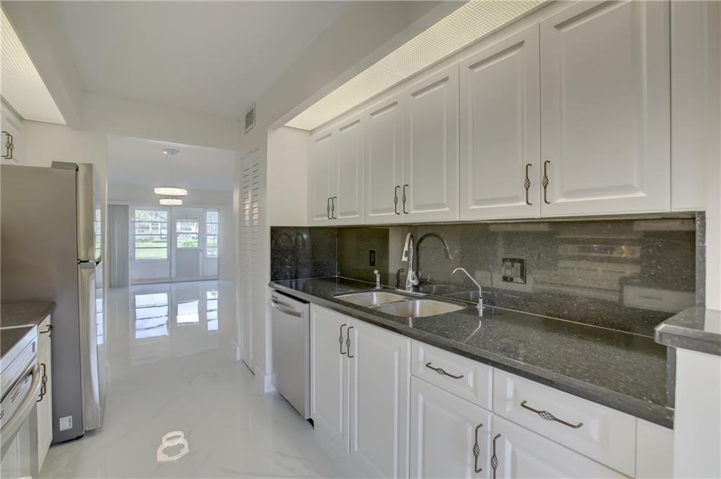REMODELED, NEW FLOORING, Nice view of the pool area, 2 Beds 2 baths, very desirable and convenient first floor located in one of the newest buildings, parking spot right across the unit, remodeled kitchen, new S/S appliances, remodeled bathrooms, MOVE IN READY, 2 Walk in closets, galley kitchen, recently painted, washer and dryer in the unit. Century Village is an active 55+ Community with tons of amenities including swimming pools (Indoor/outdoor). Total maintenance fee: $549/ month ($292.63 to GARFIELD + $256.00 to CVP Properties) NO RENTALS ALLOWED FOR THE 2 FIRST YEARS OF OWNERSHIP. Association requires a minimum credit score of $650