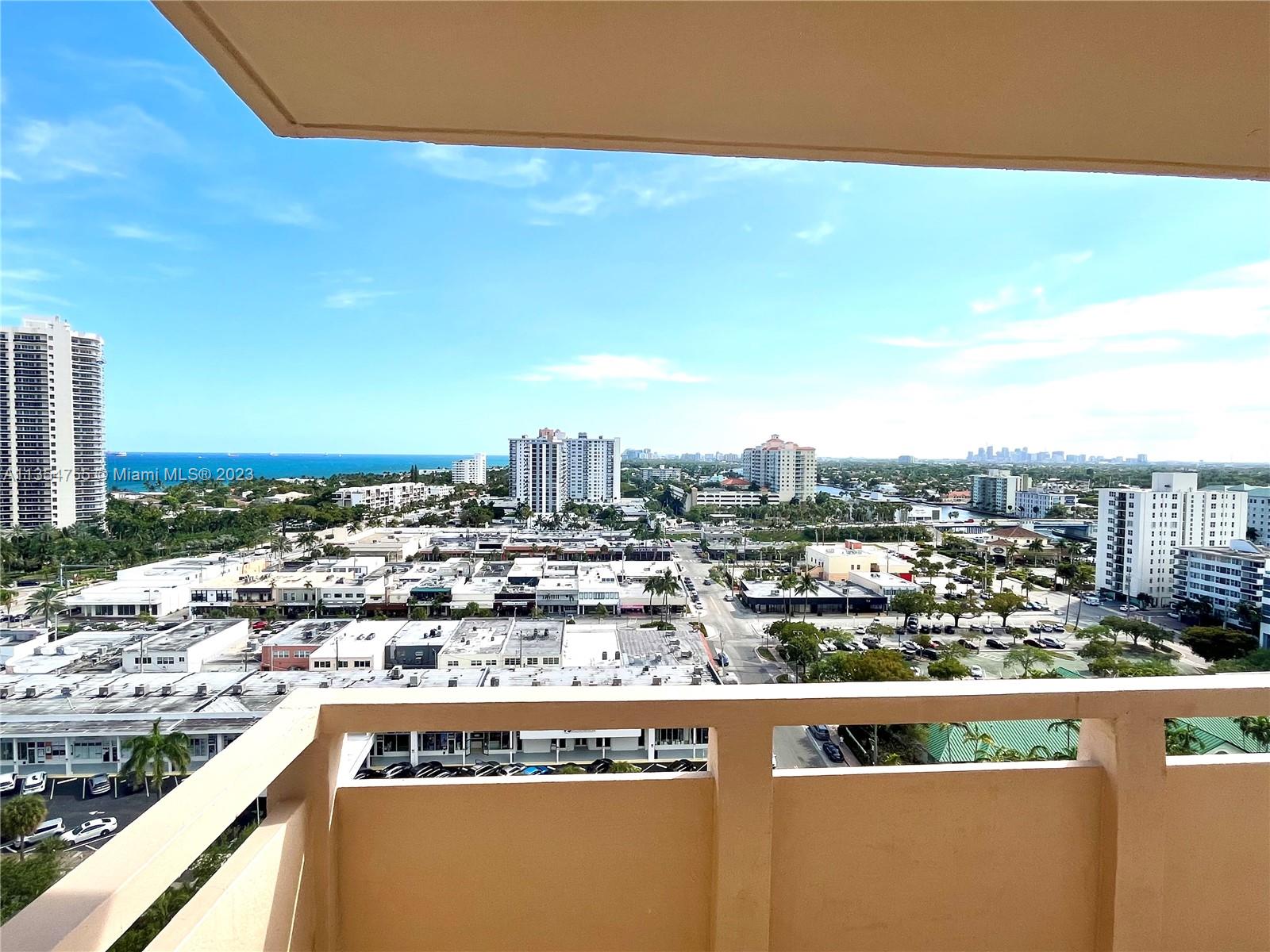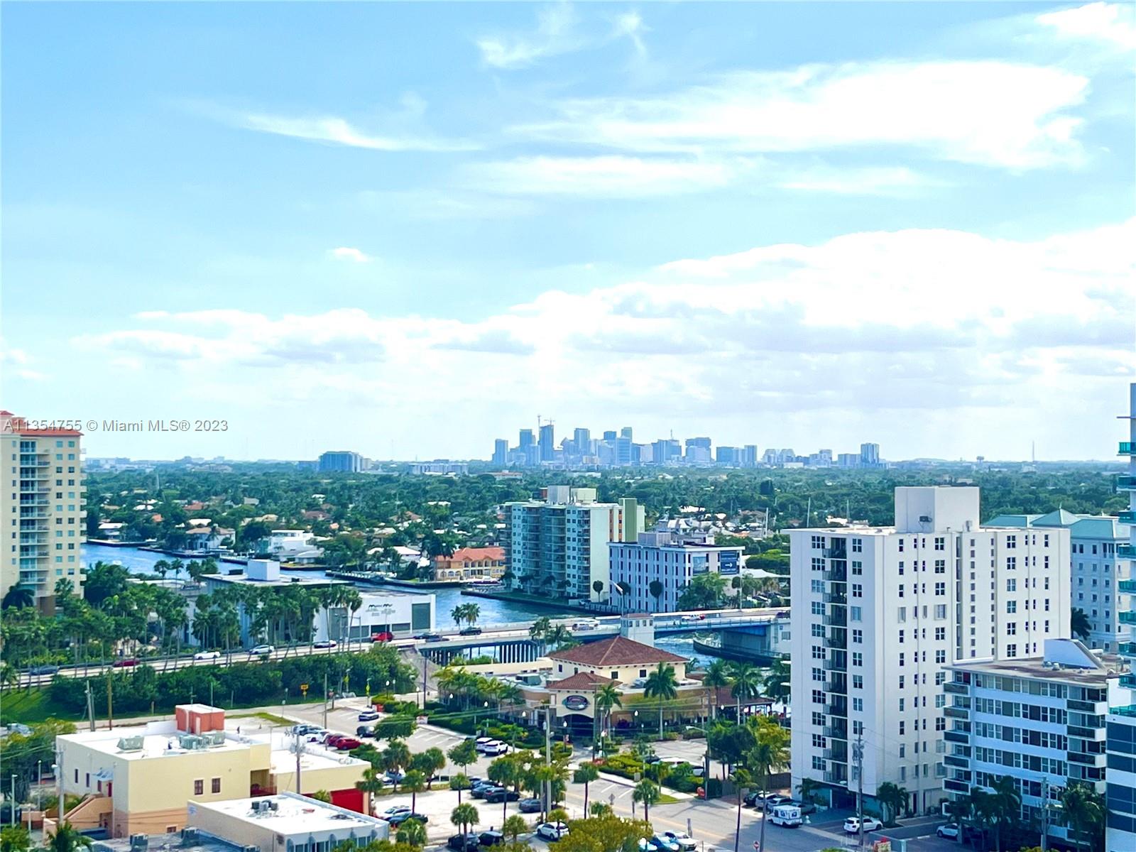 Stunning views from this 2 Bedroom 2 Bathroom Condo. Enjoy Ocean views, Intracoastal Views, Downtown Fort Lauderdale City Skyline, and pool views from your large balcony! This is a nice corner unit that allows for a nice calm breeze! Tile flooring though out and lots of storage space. Large Primary Bedroom with En Suite and large walk-in closet. Ocean views from all rooms! Amenities include a heated pool, gym, community lounge, library, updated lobby with waiting area, community shuttle rides from this complex, 24-hour security, a car wash area, and high speed elevators. Walk to the beach and many restaurants and shops. Very convenient location! This is a must see. Minutes to downtown Fort Lauderdale, Las Olas, the airport, Wilton Manors, and much more!