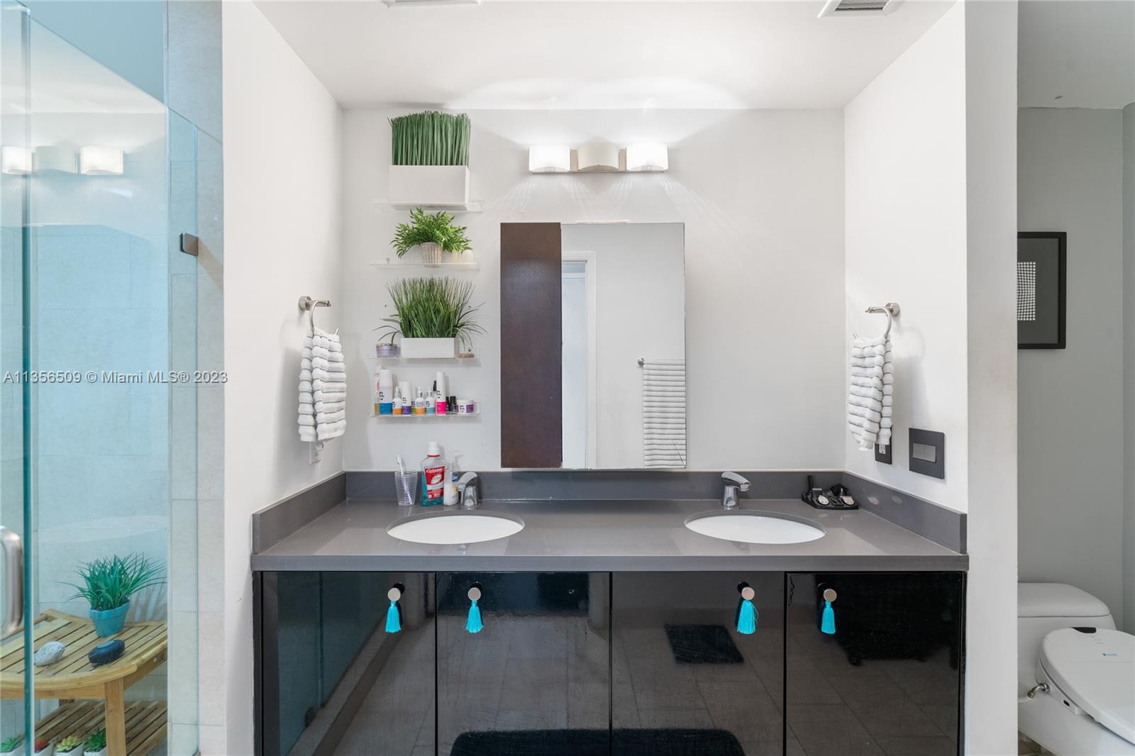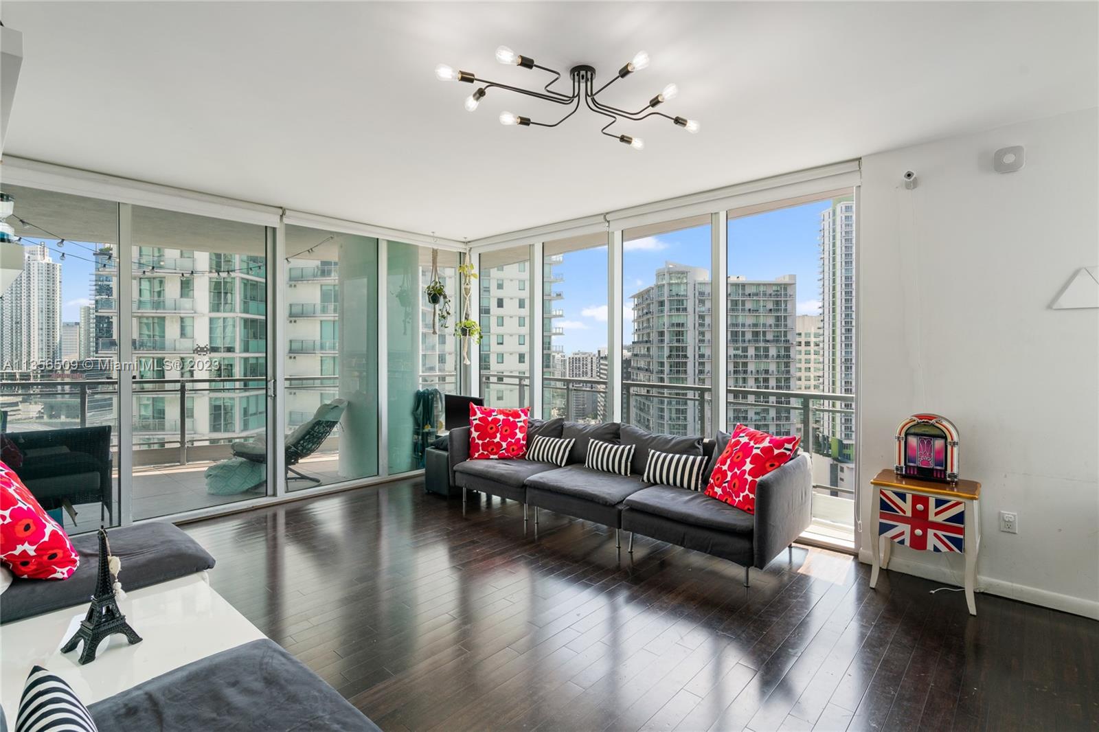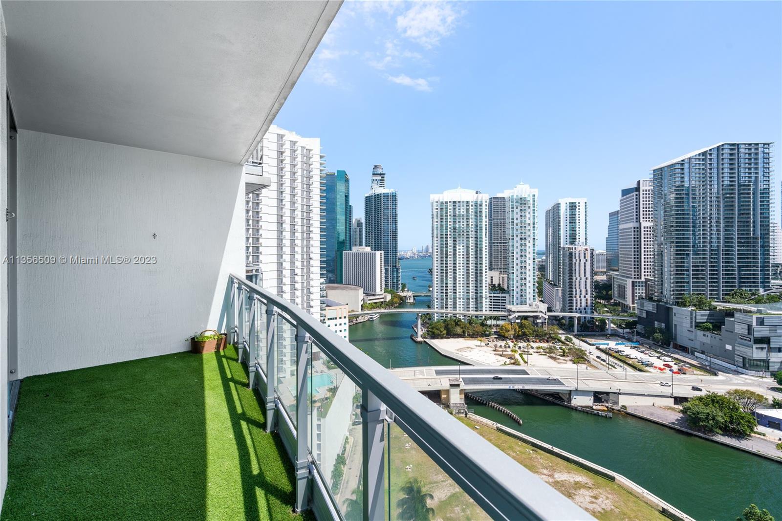 Spacious Corner unit 2/2.5 bathroom with beautiful views of the Brickell Skyline, Miami River and stunning Sunset views.The views are great during the day and night! Split floor plan (bedrooms are on complete opposite sides of the property) with an open living room, wood floors throughout, and a large wrap around balcony. Enjoy lots of natural light from this corner property. The IVY Condo is located in the exclusive and private Riverfront community , which has easy direct access to the highway and is walking distance to Brickell City Center and Downtown. The IVY Condo has a new spa, renovated pool, great gym and separate cardio zone room. infinity-edge swimming pool, lap pool, and designated bbq area..
