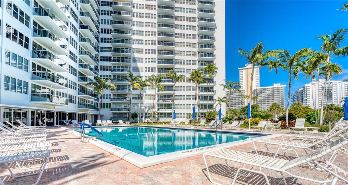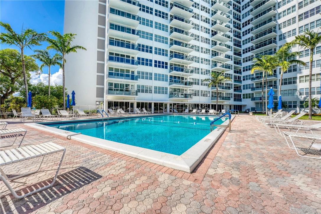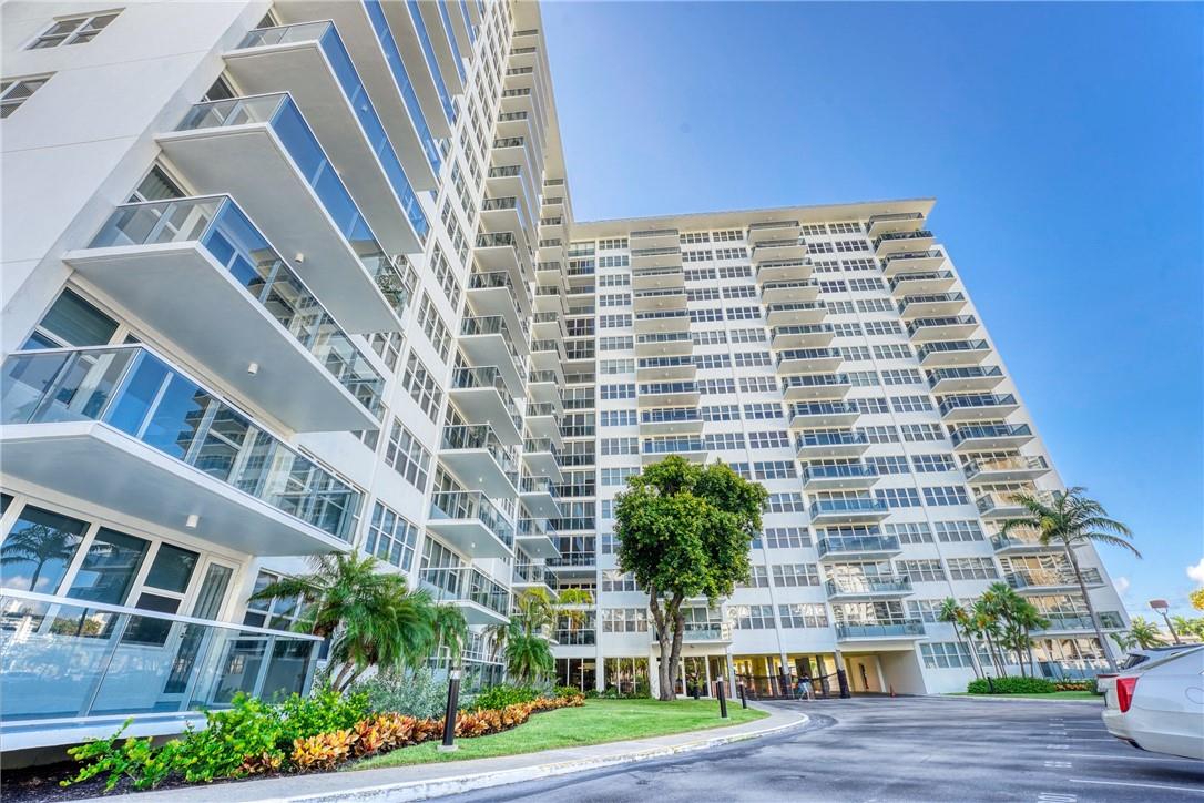 WIDE OPEN VIEWS over the Intracoastal, intersecting canals, the nearby golf course plus glimpse of the ocean. Updated ceramic floors reflect natural light creating brightness in this north facing unit. Hurricane windows, new roof, new glass balconies. AMAZING location- walk to the beach, restaurants, shopping, grocery, retail. High speed fiber optic cable & internet included. Pool heated to 86 degrees year round, fitness center, bocce, full time on site management in this doorman building. Fully funding reserves. One buyer must be age 55 or over. Best deal in Broward with all these amenities and this close to the beach. Clubhouse on the Intracoastal for exclusive use of owners.
