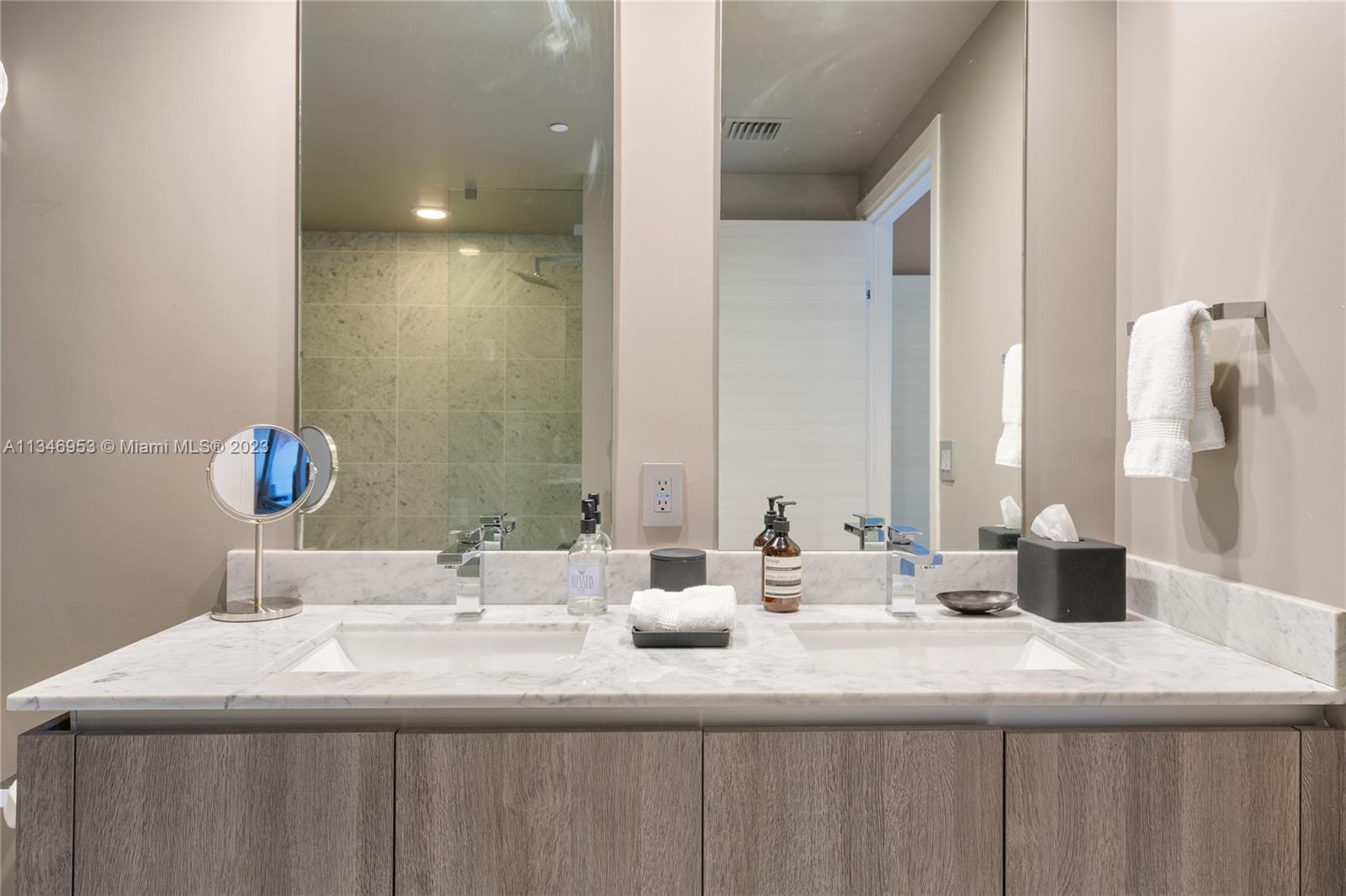 This is a beautiful and spacious 3 bedroom plus den, 4 bath (with two Master bedrooms) located in the heart of Brickell. It has been beautifulky designed and decorated to create a luxurious and comfortable living space. The wrap-around balcony offers stunning city views, and the open floor plan is perfect for entertaining guests or relaxing with loved ones. Each bedroom has ample closet space, and the den can be used as a home office, workout room, or additional entertainment space. There are 4 beautifully appointed bathrooms, including a spa-like master suite. This is an amazing opportunity to live in one of the most desirable locations in Miami, so don't miss out!