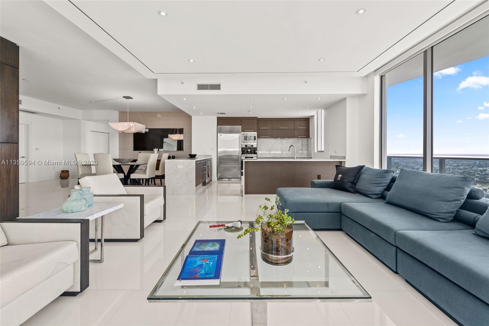 Rarely available turnkey penthouse on the 61st floor features private & large elevator foyer. Exceptional quality finishes w/custom closets, wood panel wall coverings, lighting, and bathrooms. Unit is freshly painted! 5 balconies offer bay and city views! Open kitchen with Miele and Sub-Zero appliances. Large primary suite with walk-in closet, dual sinks, shower, separate tub, and private balconies off bedroom and bathroom. 900 Biscayne Bay offers hotel-style amenities including full-service spa, fitness center, pools, activity room, movie theater, children’s playroom & more! Walk to the Brightline, Adrienne Arsht Center, Perez Art Museum Miami, Bayside, American Airlines Arena, Bayfront Park and more. Live the new urban lifestyle in luxury in Downtown Miami. 5 mins. to South Beach.