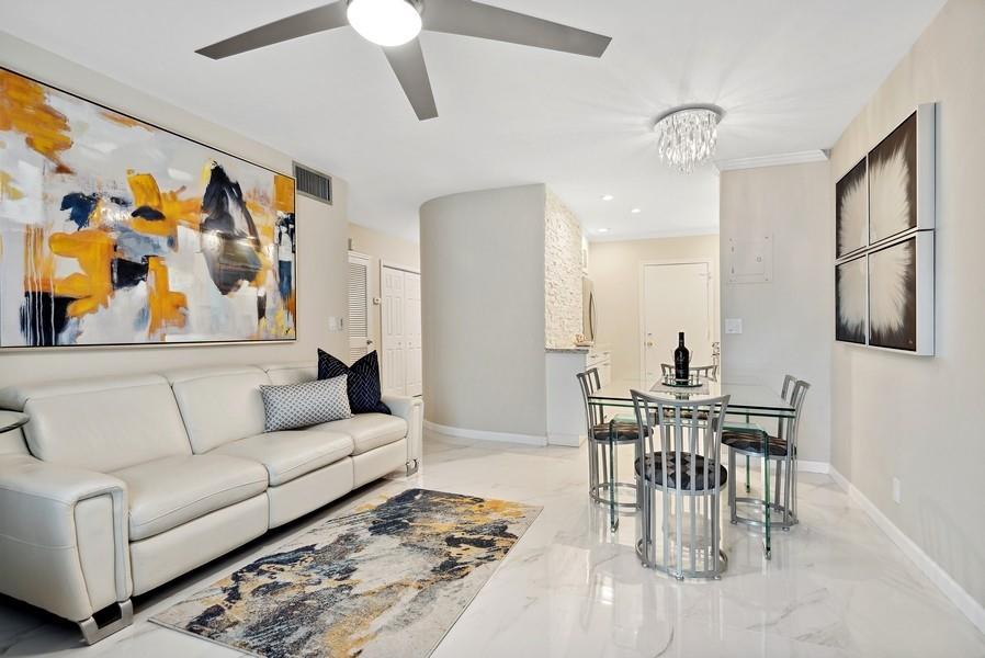 Property has been sold UNFURNISHED. Cash or Min 30% down. Assn requires Min 700 CREDIT SCORE FOR ALL OCCUPANTS! Colonnades Beautiful 1 bed 1.5 bath owner renovation in 2020 includes ceilings, lighting, flooring, plumbing, AC, water heater, kitchen, baths, laundry. Stunning kitchen featuring cream stone wall accent, gorgeous granite counters, Samsung appliances, and frosted glass self close cabinets and drawers. Elegant 24x24 porcelain tile flooring. Electrolux stack laundry. Luxuriously appointed bathrooms. Closet organizers. Artwork is negotiable. The Colonnades, featuring pristine oversized heated pool, is located one half mile from US1, 10 minutes to beaches and highways, 5 minutes to shopping, medical, dining, retail and more. No renting 2 years, no pets, 1parking.