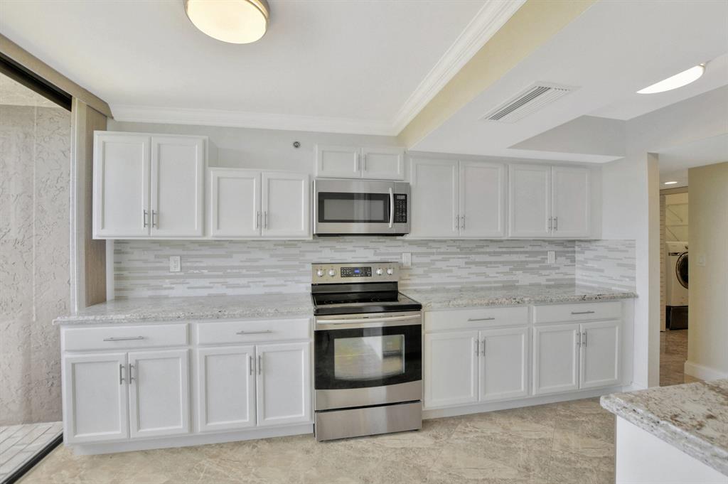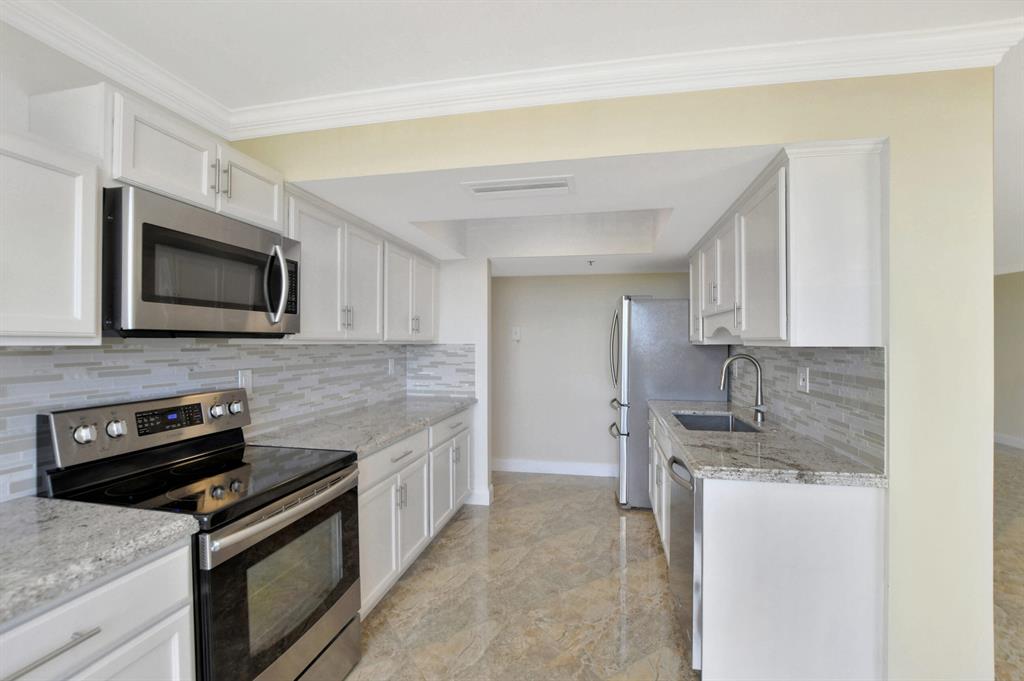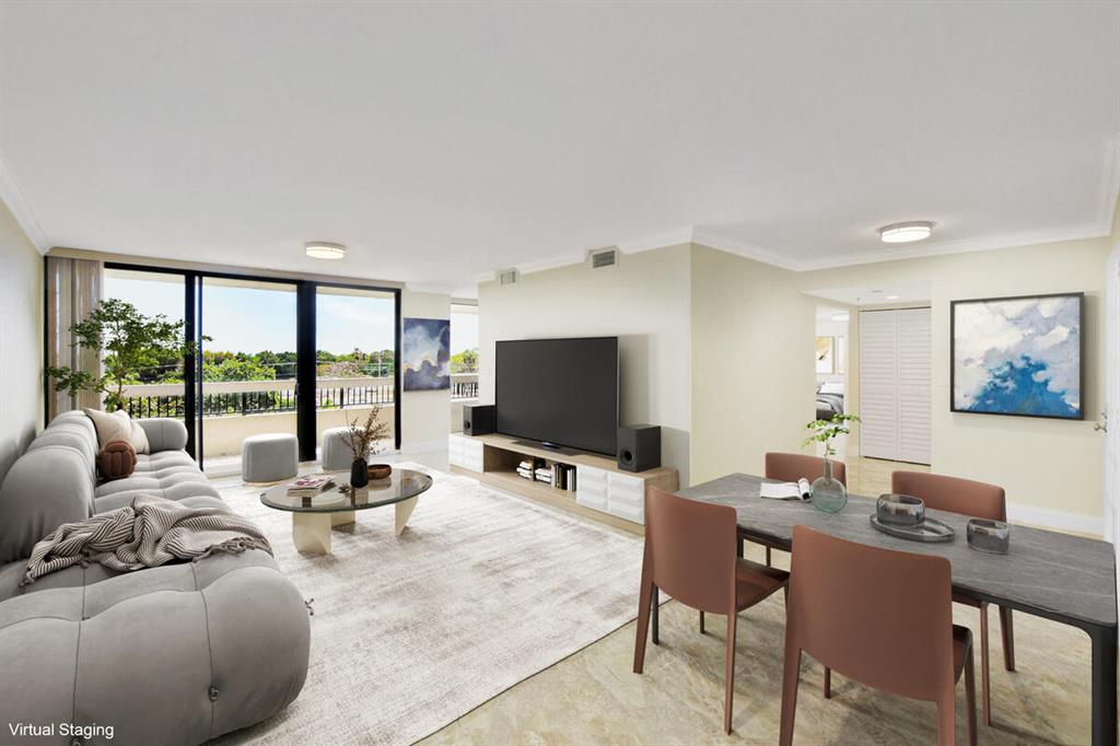 Welcome to your beautifully renovated 2 bedroom, 2 bath condo located in a charming boutique building of La Residence in the heart of Boca Raton. This stunning residence boasts custom modern finishes throughout to create a sophisticated and luxurious living experience. As you enter the condo, you will immediately notice the spacious open floor plan that seamlessly blends the living, dining areas that leads into the kitchen. The living room features large sliding doors that let in an abundance of natural light, thereby creating a warm and inviting atmosphere.The fully updated kitchen is equipped with stainless steel appliances, custom cabinetry, and sleek quartz countertops for an expended kitchen that's ready for your cooking pleasure. The dining and living area are perfect for hosting