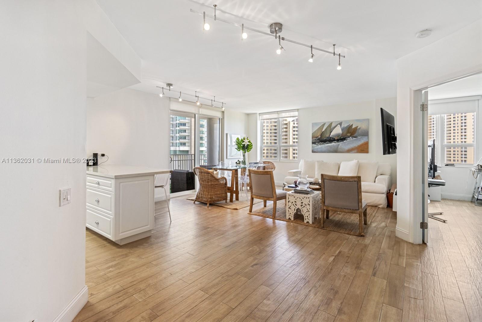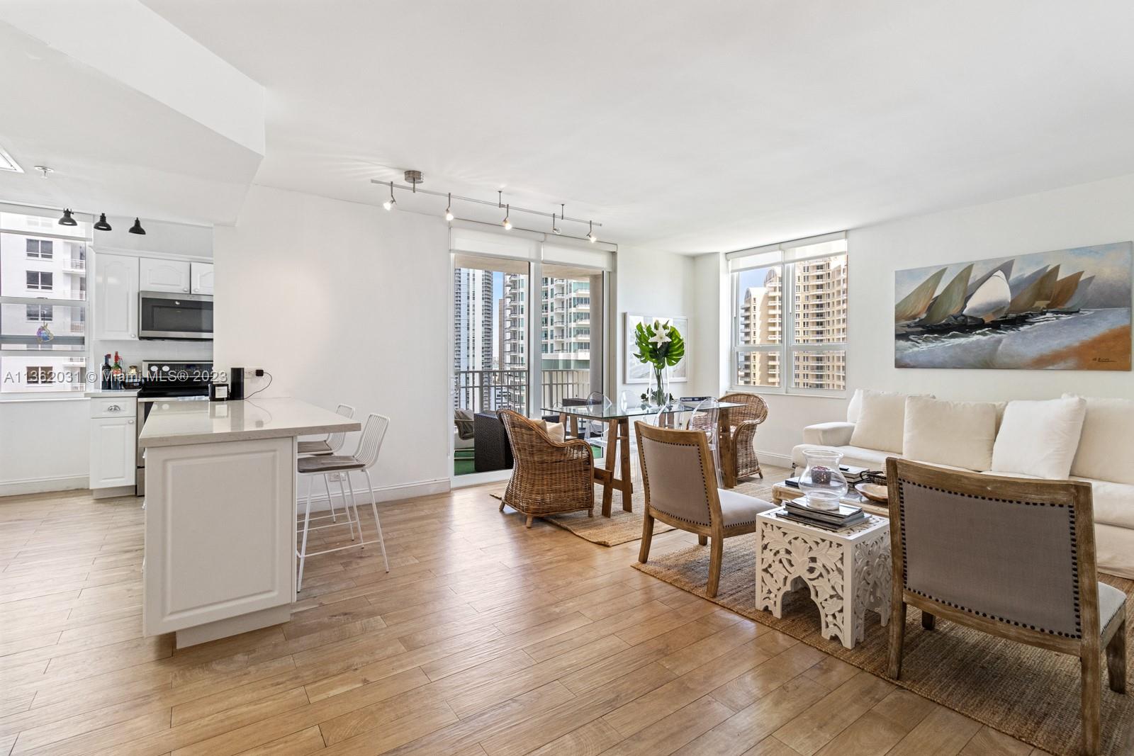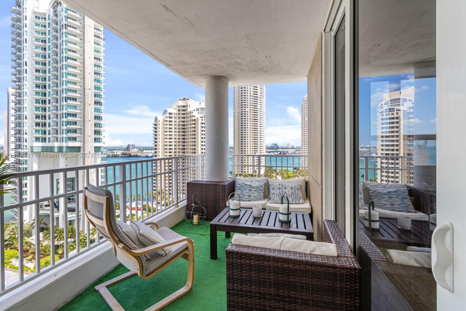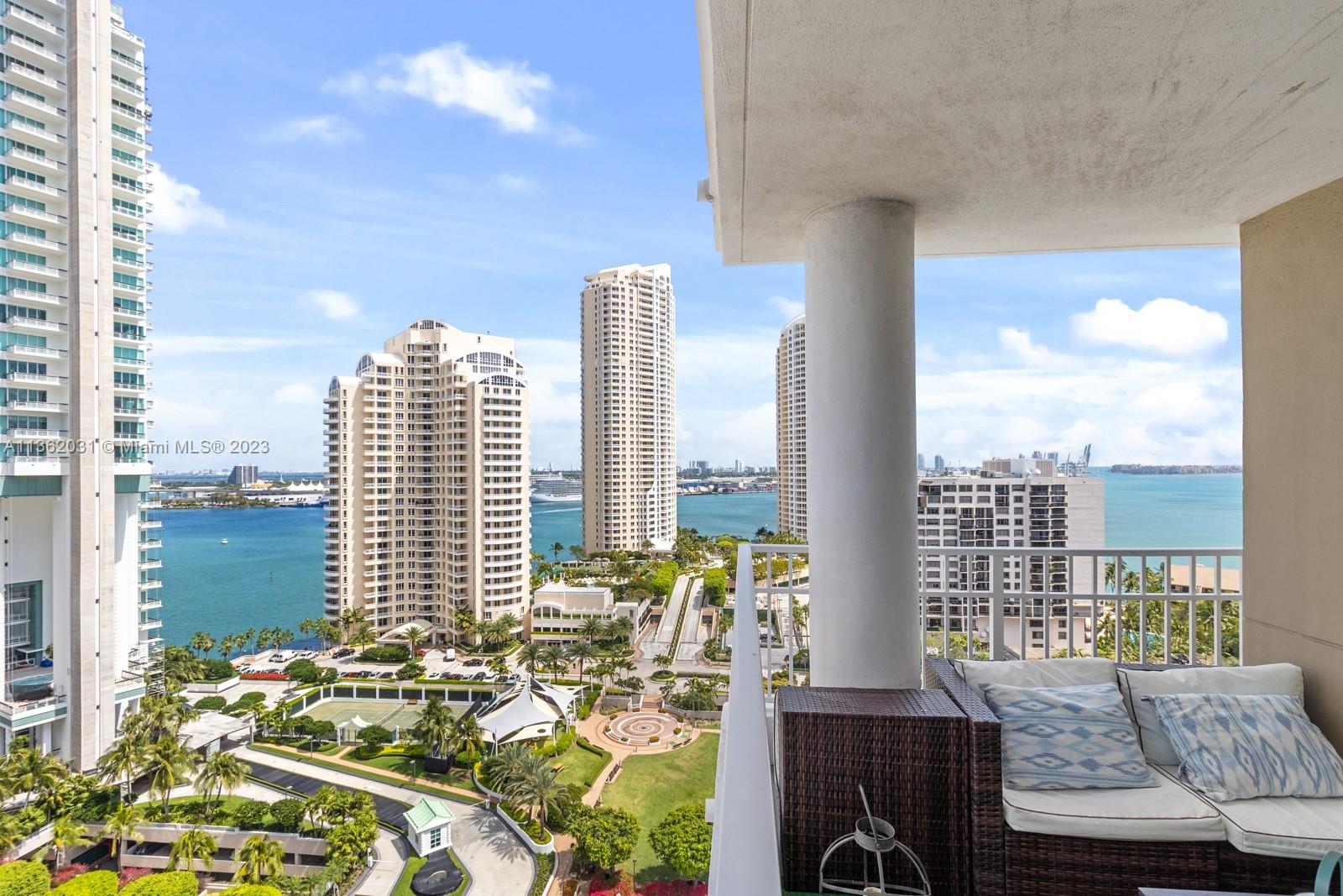 Completely upgraded corner unit in the heart of Brickell Key with beautiful city and bay views at exclusive Courvoisier Courts building. The unit features 2 fully renovated bedrooms and 2.5 bathrooms with an updated and beautiful kitchen with quartz countertops and elegant mosaic backsplash, porcelain floors throughout and an outstanding open balcony. Amenities include: pool, renovated energy, spa, racquetball courts, 24 hours security, valet and billiard room. Walking distance to all Island amenities like running track, mini supermarket, beauty salon, restaurants, 2 parks, picnic area, and much more!