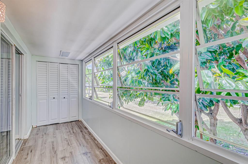 This Condo has been completely and lovingly remodeled. The open kitchen floor plan is all new and creates an inviting feeling complete with mobile center island. There are upgrades throughout; new central air, all new appliances, new front door and all new flooring. The baths have also been remodeled and received new fixtures/lighting. The bedroom is very private and has a wonderful porch with sliding doors and windows to enjoy some afternoon breezes. You also have nice views and the wonderful rubber tree keeps it nice and shady. There are a lot of activities and amenities available for the community including transportation services, club house, theatre, indoor swimming pool and so much more.