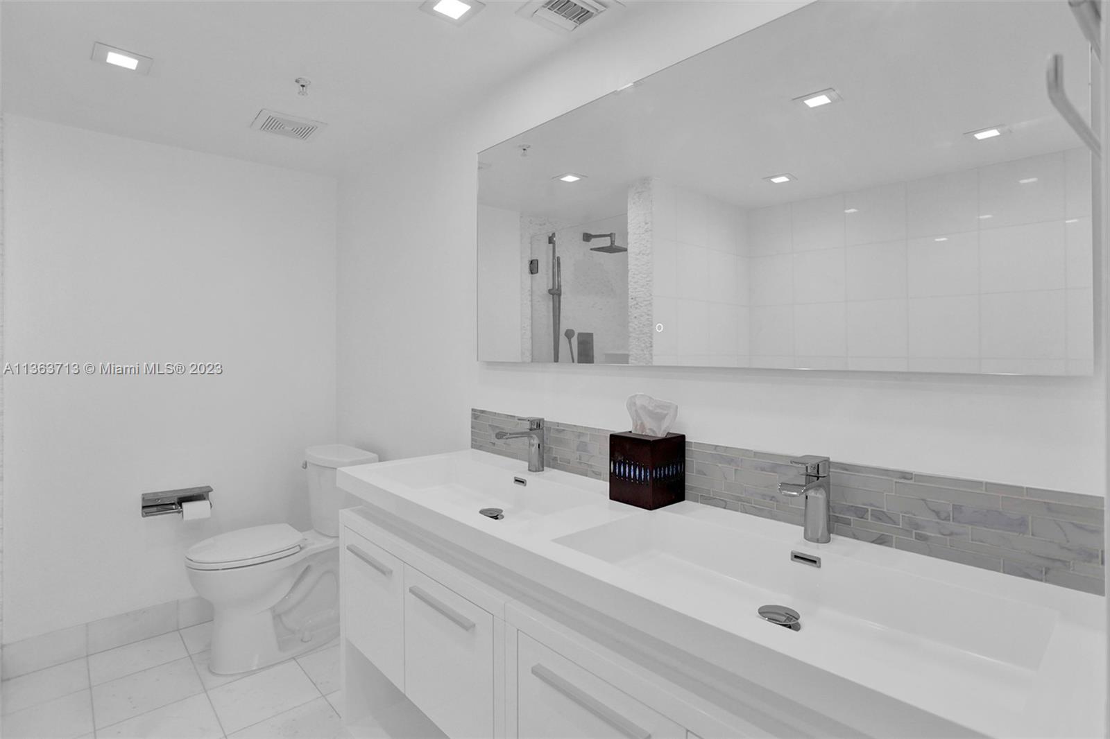 Walk into breathtaking city views everyday with this gorgeous East facing, split floor plan unit. Floor to ceiling hurricane impact windows and balcony access from every room in the unit. The primary bedroom has a built out closet. New double sinks, a jetted tub & a separate glass shower in primary bath. Unit comes equipped with remote control blackout shades, washer dryer & newer appliances, newer AC & Tankless water heater. Updated bathrooms & kitchen but room for your personal touches & modernization. Sale includes 1 deeded parking space. Bldg has doorman, valet, pet friendly, pool, sauna & gym. The area is VERY walkable w/ everything steps away.