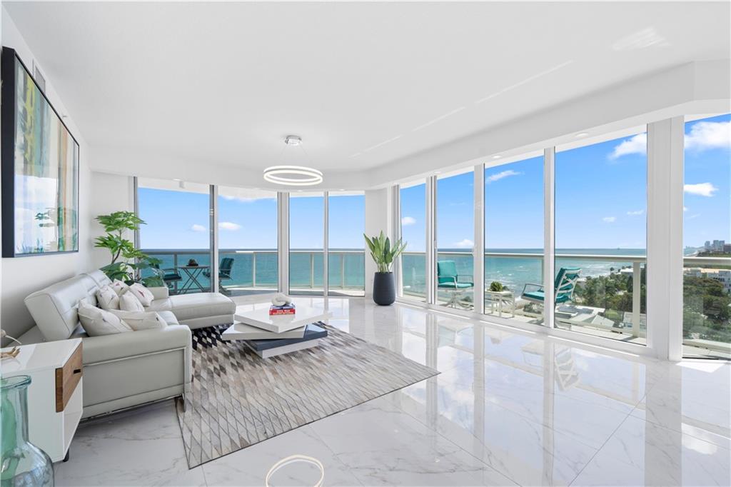 PANORAMIC DIRECT OCEAN FRONT SE CORNER, WRAP AROUND BALCONY 3 BEDROOMS/2.5 BATHS + MEDIA ROOM/DEN, STUNNING ONE OF A KIND CURATED RESIDENCE OVER 2300 INTERIOR SQUARE FEET, DIRECTLY ON THE SAND. PREMIUM FEATURES INCLUDE 24X48 PORCELAIN TILE FLOORS, LED LIGHTING, FROSTED GLASS DOORS THROUGHOUT. MODERN CHEF’S OPEN KITCHEN EQUIPPED W/ QUARTZ COUNTER TOPS, GLOSSY WHITE APPLIANCES & AMPLE CABINET SPACE. FLOOR TO CEILING GLASS, FUNCTIONAL USE OF THE INTERIOR & OUTDOOR SPACES. THE SERENE MASTER BEDROOM IS GRAND IN SIZE & SETTING, ENJOYING A QUINTESSENTIAL VIEW OF THE OCEAN, TWO EXPANSIVE CUSTOM CLOSETS, COMPLETE WITH ENSUITE SPA LIKE BATH W/ GLASS ENCLOSED SHOWER, LUXURIOUS BATH & DUAL VANITIES. OCEAN FRONT COMPLEX WITH 600 FEET ON THE SAND. 2 PRIME PARKING SPACES AND STORAGE ARE INCLUDED.