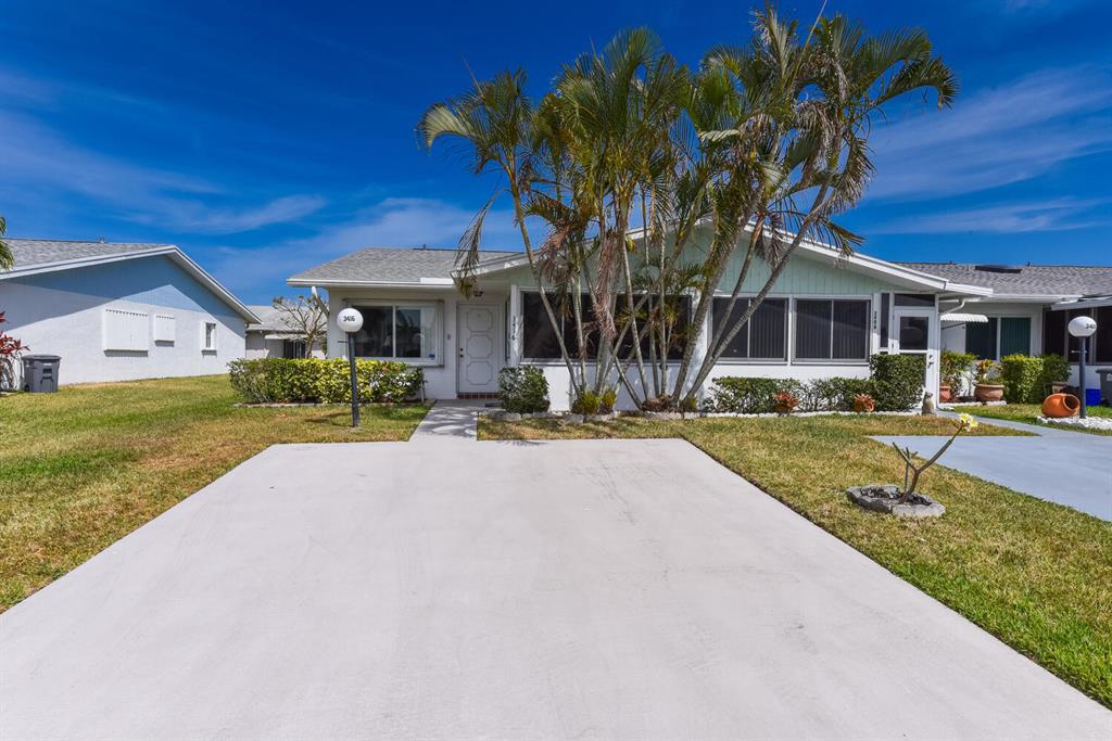 This corner unit 2 bedroom 2 bath villa in private, gated 55+ golf course community is looking for a new owner. New roof. New A/C condenser. This is an amenity driven community with golf, tennis, pickle ball, pool, fitness center and clubhouse. And low HOA fees to round out the perfect package. Small pet, under 20 pounds, welcomed.