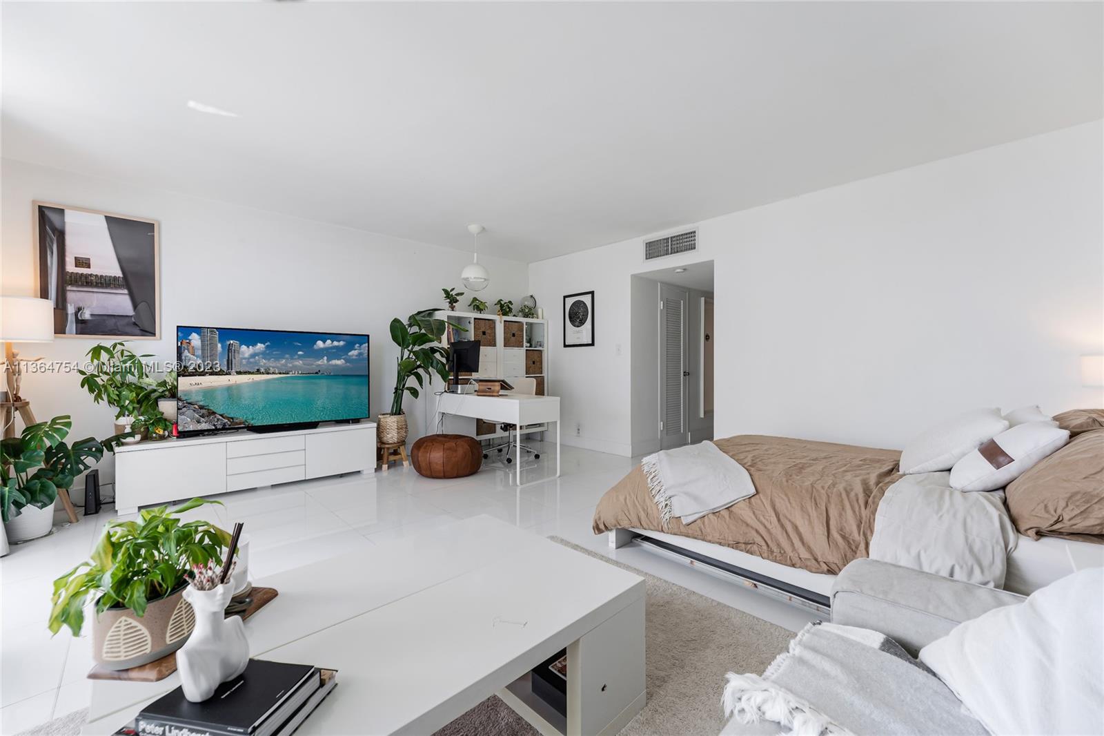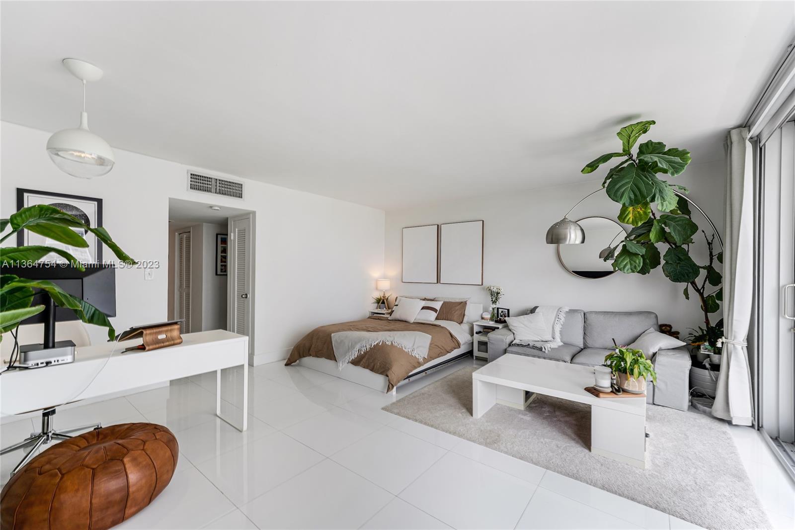 Remodeled bright studio on trendy West avenue. Private balcony with partial bay and city views. White glossy kitchen cabinetry, quartz countertop with stainless steel appliances. Modern bathroom with bowl sink and bathtub. Walking distance to the beach, shopping, and dining. All Mirador amenities - gym, pool, in-building convenience store.