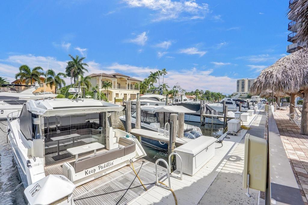 Enjoy beautiful views from this two bedroom, two bath condo boutique with only 93 units overlooking Lake Santa Barbara and Intracoastal from the ninth floor. This unit comes with two deeded parking spaces(one of them is a carport) dockage for up to a 30-foot boat when available for sale or rent by owners, recently painted, washer and dryer in unit, A/C and water heater less than five years old and two balconies. This canal condo offers private deeded ocean access across the street ( A1A from the beach ) a very good size pool, whirlpool, exercise room, billiard/ping pong room, sauna (women and men )No lease first yr owned a good size storage room, clubhouse, barbeque and car wash. Pets are welcome under 25lbs.