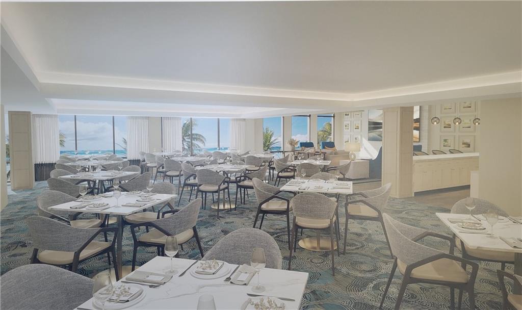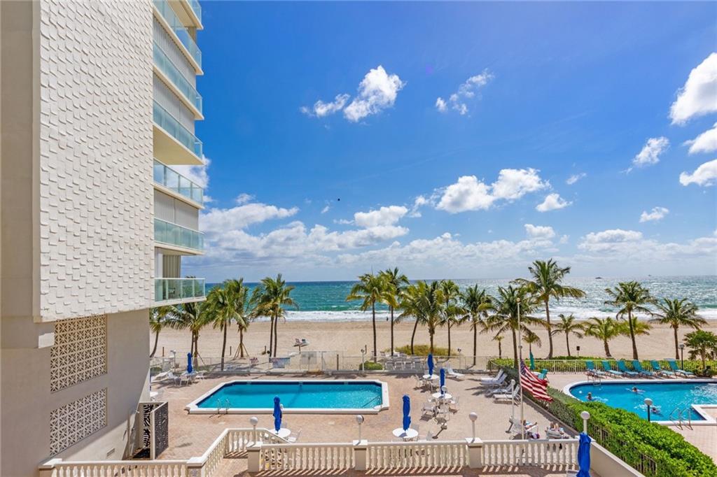 Wonderful high floor unit in Pompano Atlantis overlooking the ocean and located at the edge of Briny Avenue. Spacious & completely renovated, 2 bedroom, 2 bathroom condo is sold completely furnished & turn key. Featuring impact windows, beautiful porcelain tile floor throughout, kitchen with granite countertop & stainless appliances, extra storage & underground parking. Cable & internet included in monthly fees. This oceanfront building offers a well-equipped fitness center, sauna, heated pool, BBQ and beach chairs, lounge & party room. 24/7 security. Building 50-year recertification in progress. Recently repainted, the building also features new glass balconies. Upcoming remodeled lobby, lounge room, corridors and parking garage. Walk to restaurants, grocery stores, pharmacy and more.