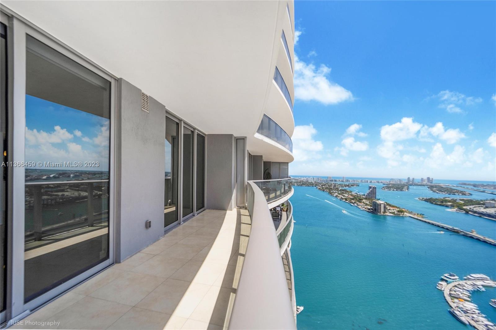 Rarely available -08 line, this high floor one bedroom + den residence features private elevator, private foyer, and unobstructed views because it clears the building next door. The den can be easily converted into a second bedroom with a sliding door, it has direct access to the full second bathroom and its own closet. Ceramic flooring throughout, quarts counters, stainless steel appliances, window treatments, and an oversized balcony with open views of Biscayne Bay and sunsets. Full service luxury building with two heated infinity pools, hot tub, spa, sauna, steam room, lounge, BBQ, business center, state of the art fitness center, movie theater, kids playroom, valet and concierge service, and more.