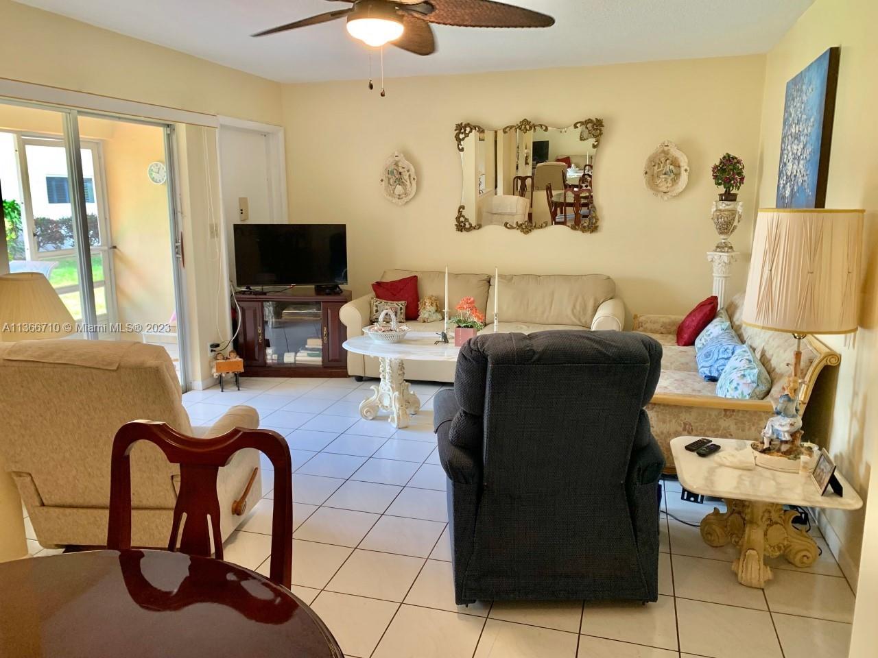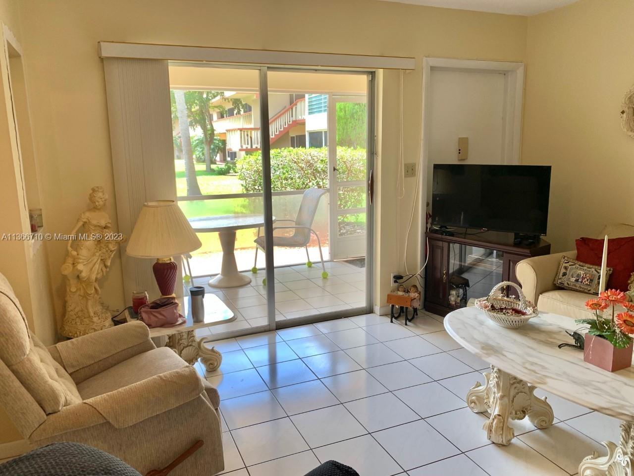 Lovely 2 bedroom unit on 1st floor- no need to take the elevator! Walk straight into your apartment! Rare model which has a sliding door in the living room. Bright unit with tiled floors throughout and updated kitchen. Being sold furnished. At least one buyer must be 55+. Gated and secure community with multiple pools and activities. Priced to sell!