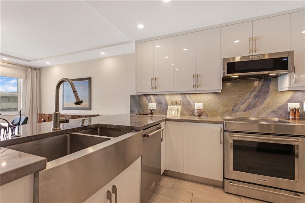 Over 2000 sqft 2 Bed 2.5 Bath on the Beach w/ocean views, recent floor to ceiling renovation. Spectacular open floor plan. Huge waterfall Quartzite island w/wine chiller & freezer. All new stainless appliances w/induction stove. New giant washer/dryer. White lacquer custom cabinets. Recessed lighting throughout. Extensive closet built-ins. Huge marble shower with traditional, wand & rainfall heads. Dual sinks w/plenty of cabinet space. Semi-private elevator & double entry doors. New A/C & electric. Through unit boasts unobstructed east Ocean views & Intracoastal views from the west bedrooms. Extensive amenities: pool, tennis, pickle ball, gym, barbecues, Bocci, 24x7 doorman++. Pets are welcome. Come see this like new, turnkey unit in beautiful Lauderdale by the Sea!
