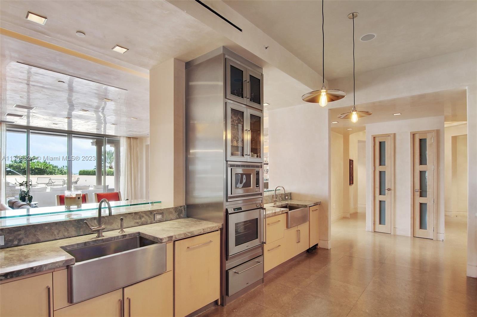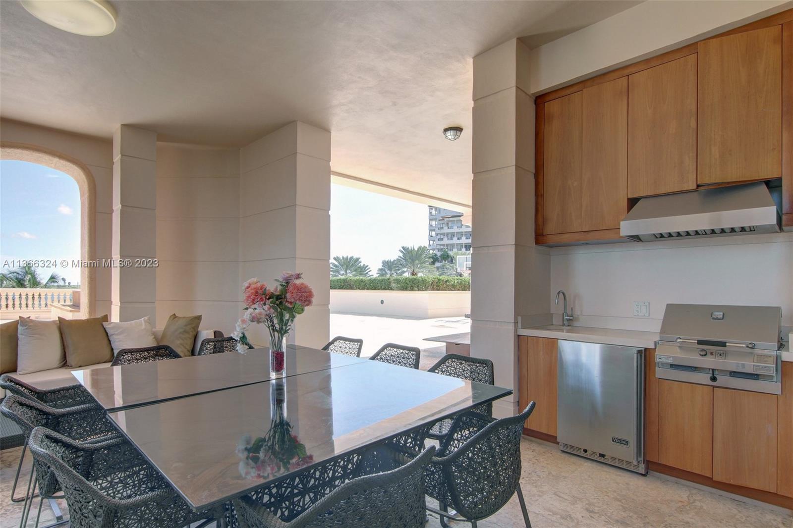 Coveted large 4BR ground floor unit in Palazzo Del Mare! Boasting ultra luxurious contemp finishes & decor in serene neutral colors. Soaring ceilings, MSTR suite w/cozy library/den & sep his/hers MSTR BA & PVTE TER. Ample brs w/en-suite BA, serene grey limestone flrs. Natural stone throughout, chandeliers & fixtures by Waterworks. Includes 3 GAR parking spcs, A/C STGE & one golf cart. Expansive 4000+/-SF TER w/summer KIT perfect for entertaining. Breathtaking SOBE views. Discrepancy between MLS and tax rolls the correct total 4,861 SF(as per floor plan)