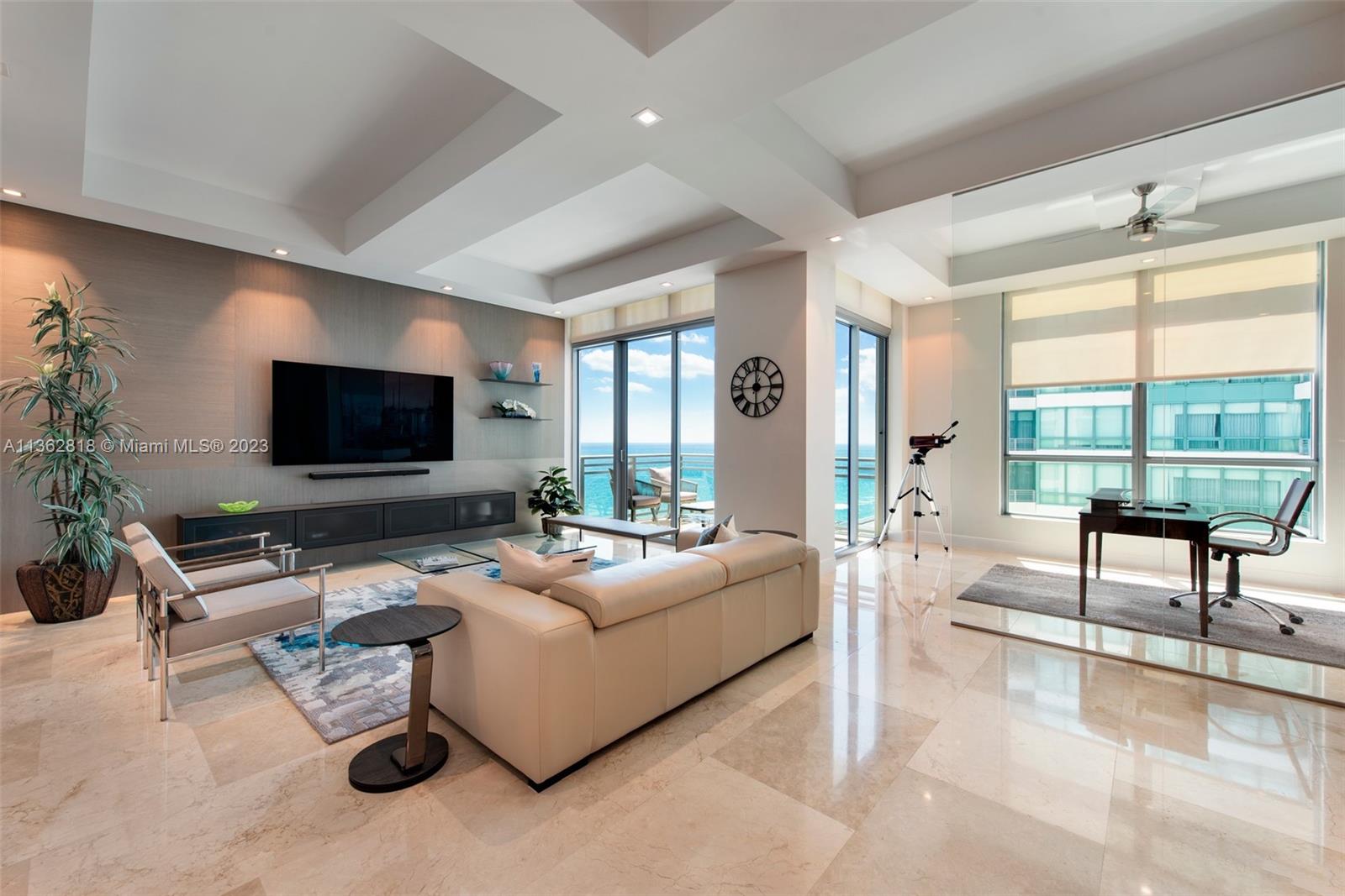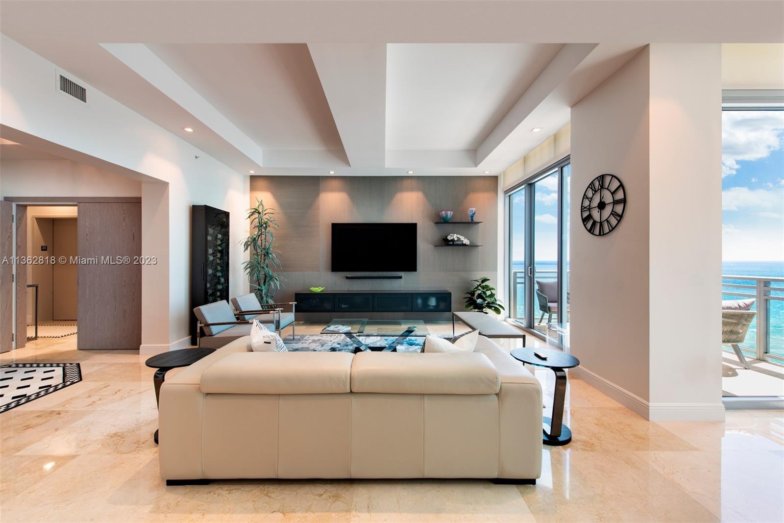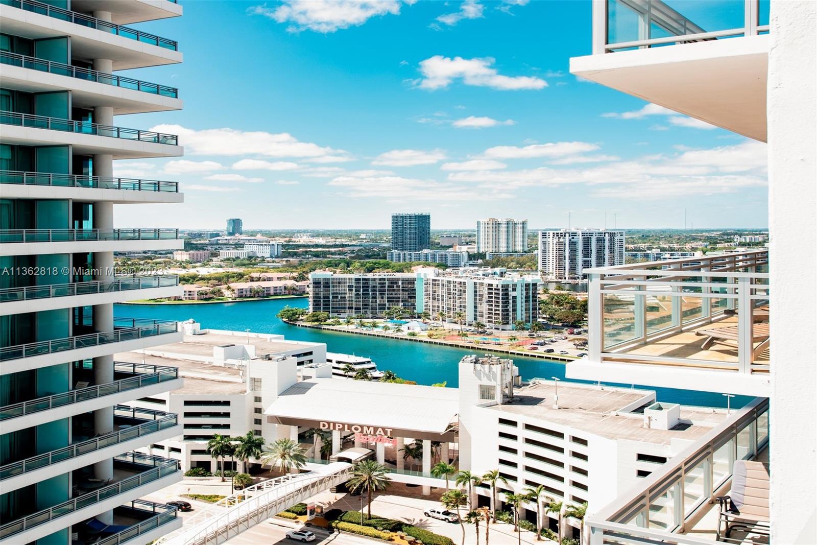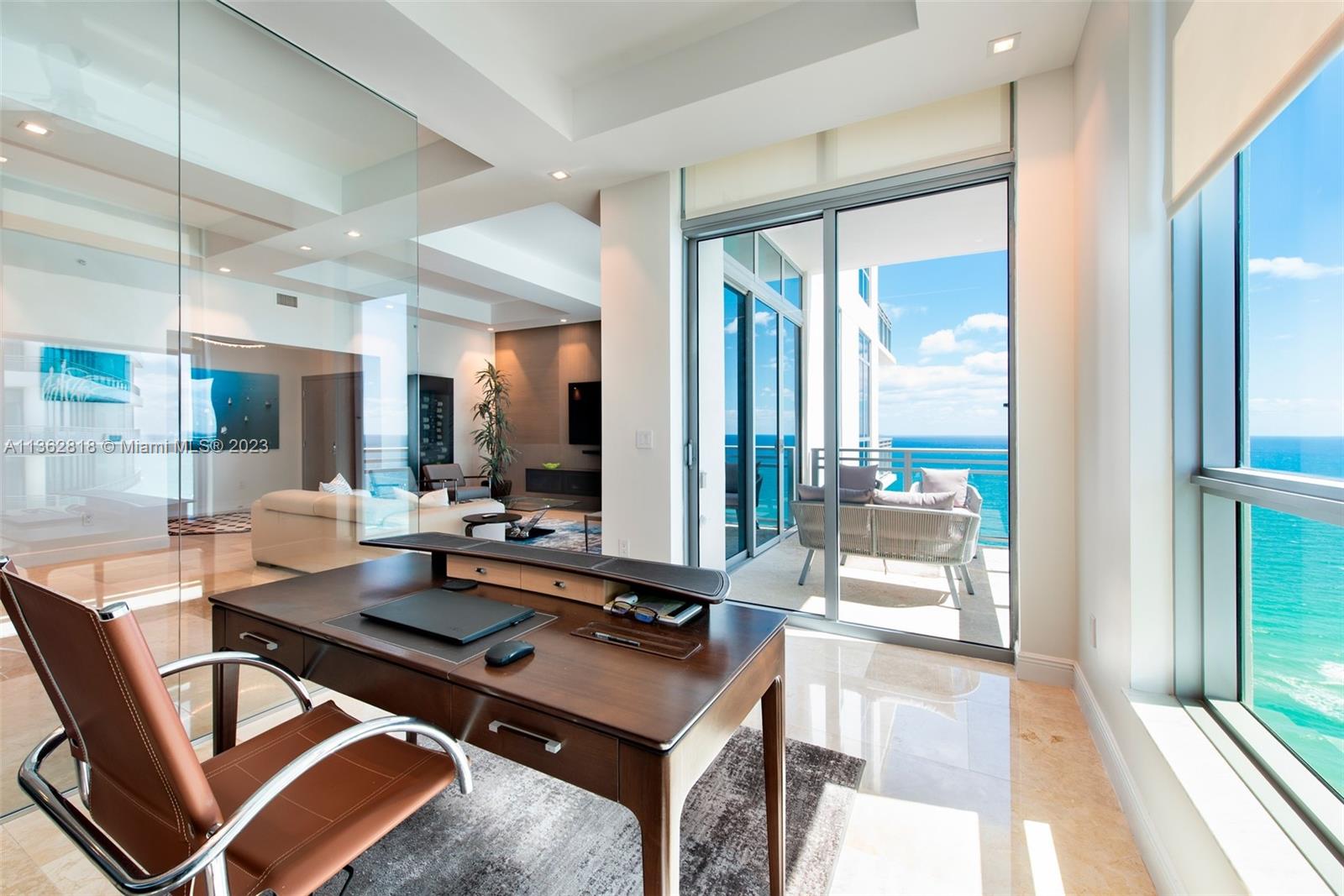 A model unit, move in ready. Private elevator entry, high floor with soaring 11 foot ceiling heights, custom lighting and closets, motorized window treatments, open kitchen concept featuring Italian cabinetry, subzero refrigeration, gas range and Miele dishwasher. Spacious flow-thru layout w/extended living, family/office & dining areas with amazing views of city and ocean from all rooms. Lobby and common areas of the private residence were recently renovated with a timeless contemporary esthetic. Amenities include a private theatre room, fitness center, sauna, heated pool, Jacuzzi, owners lounge, business center, outdoor grilling area, 24hr security and valet. Residents may also enjoy the Diplomat Resort restaurants, state-of-the-art spa and as well as including room service to your unit.