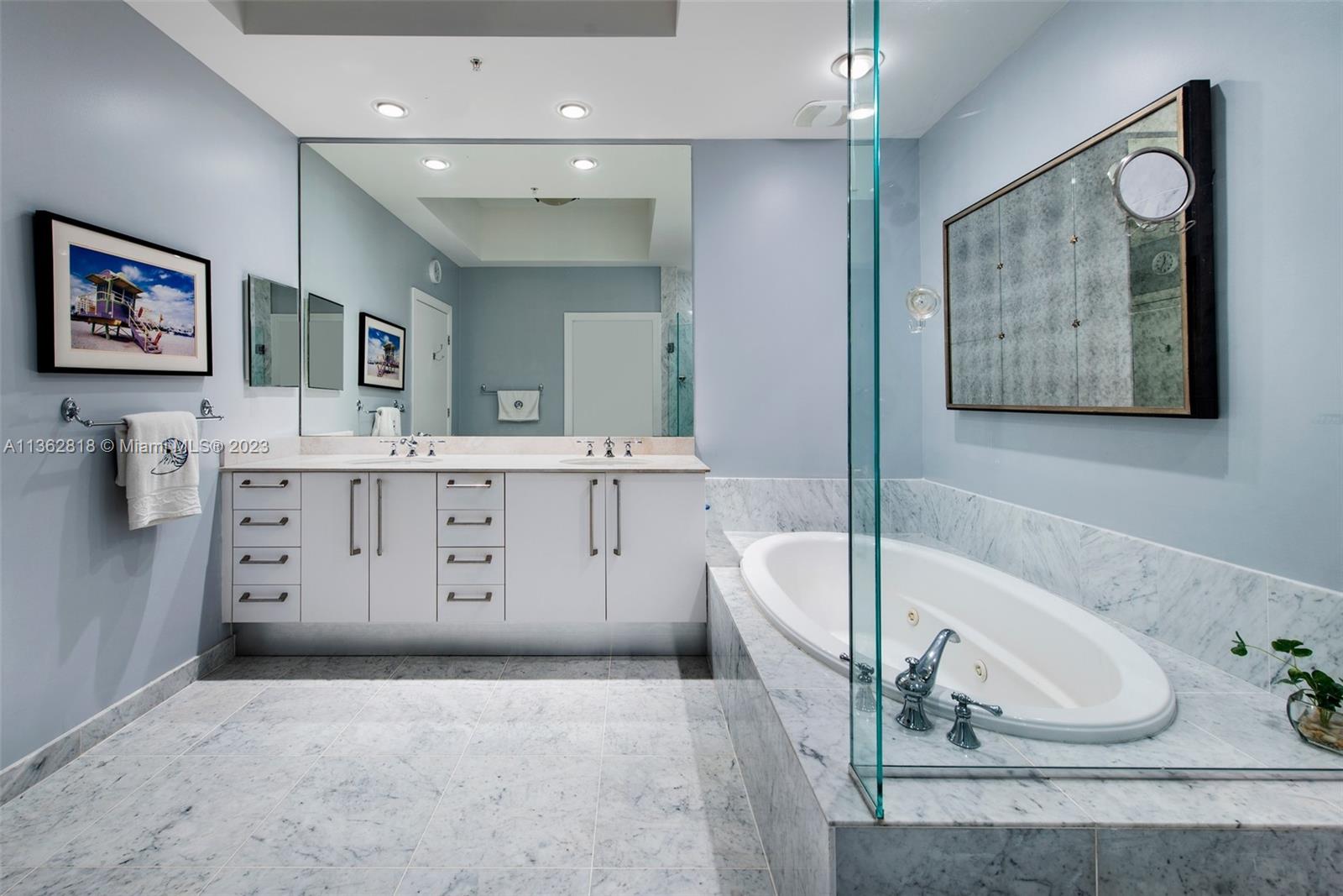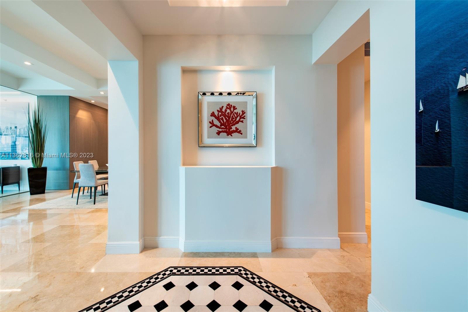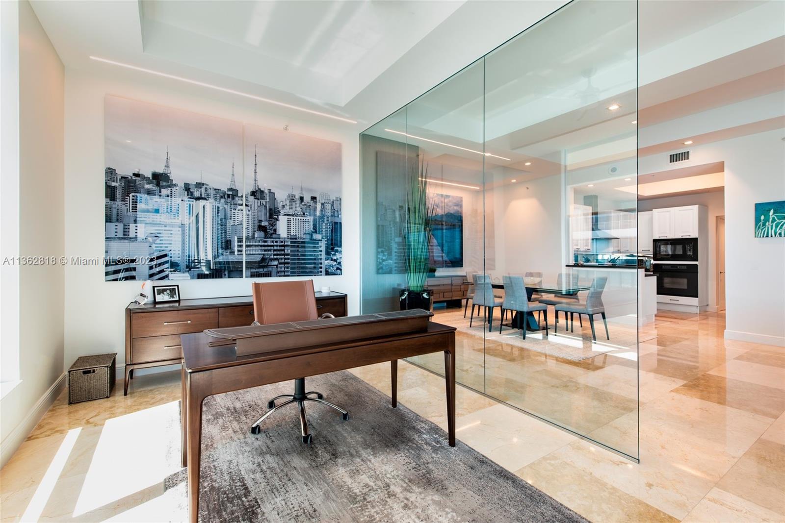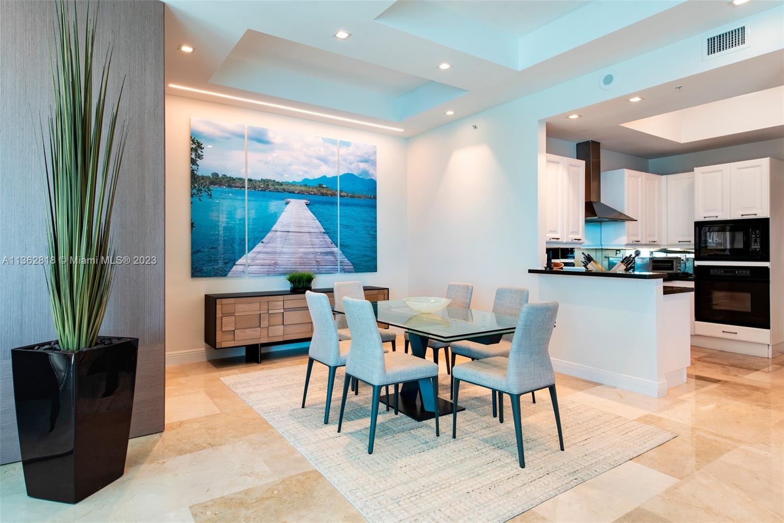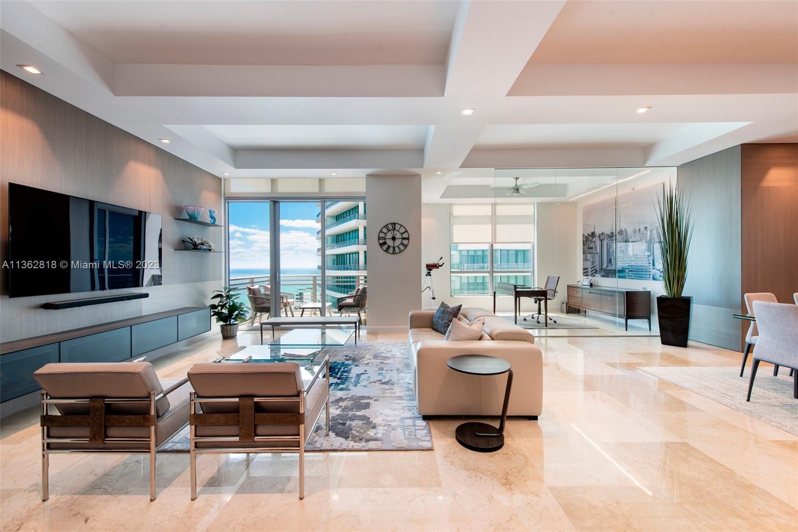 A model unit, move in ready. Private elevator entry, high floor with soaring 11 foot ceiling heights, custom lighting and closets, motorized window treatments, open kitchen concept featuring Italian cabinetry, subzero refrigeration, gas range and Miele dishwasher. Spacious flow-thru layout w/extended living, family/office & dining areas with amazing views of city and ocean from all rooms. Lobby and common areas of the private residence were recently renovated with a timeless contemporary esthetic. Amenities include a private theatre room, fitness center, sauna, heated pool, Jacuzzi, owners lounge, business center, outdoor grilling area, 24hr security and valet. Residents may also enjoy the Diplomat Resort restaurants, state-of-the-art spa and as well as including room service to your unit.
