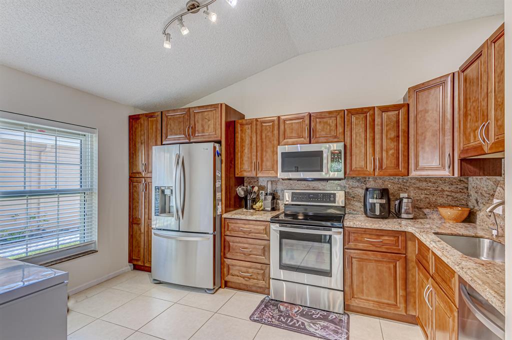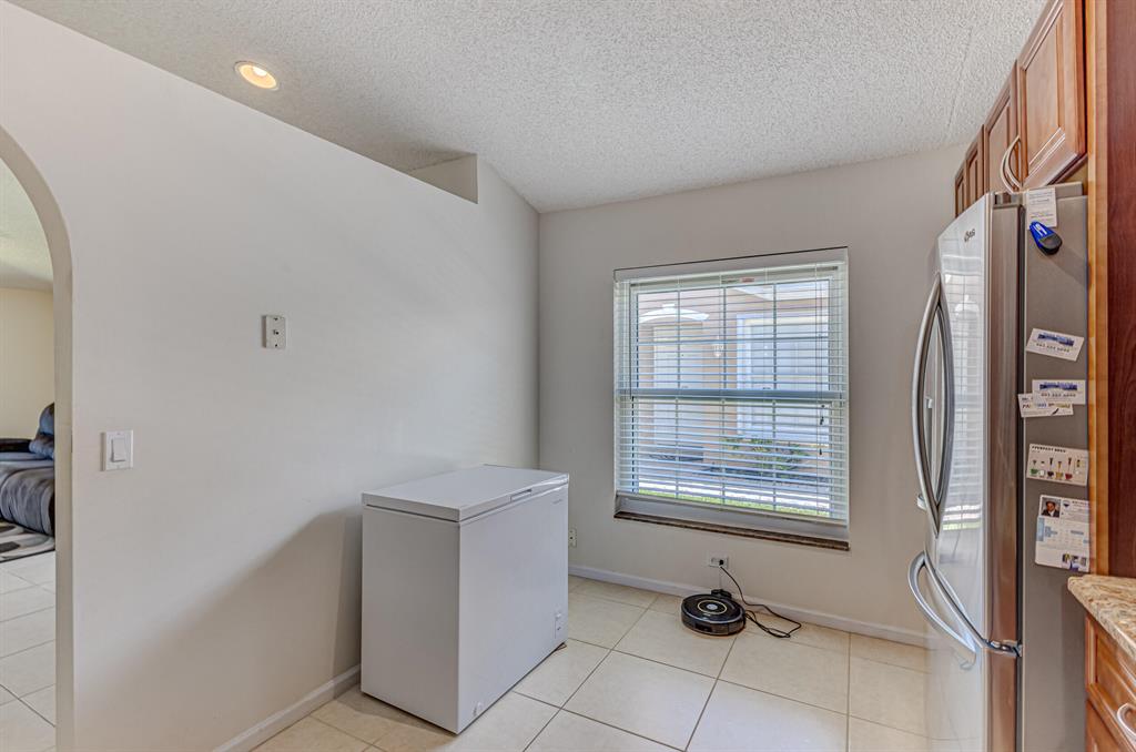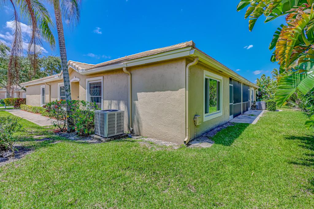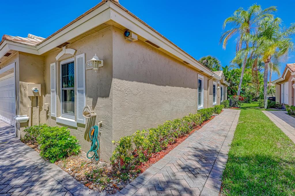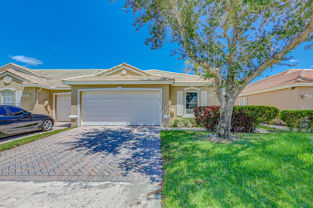 Meticulously Maintained 3/2/2 end unit villa in ultra convenient Andros Isle. Ceramic tile and premium laminate floors (no carpet). New A/C, Both bathrooms and the Kitchen fully updated. All windows are Hurricane Impact. Kitchen granite counters and cherry wood cabinets. SS appliances. BR3 office. Cabinets in Garage stay. Ring Doorbell and Nest Thermostat. Low HOA Fee includes 24/7 staffed gate, security patrol, monitored security system in the unit, Landscaping front and back, Irrigation from lake, not on meter, CATV, Broadband, WiFi, Pressure cleaning roof, ext painting, Resort Clubhouse with huge heated pool, fitness center, tennis, pickleball, Bocce. Private access road to Publix Plaza. Easy access to Wellington, Downtown WPB, Turnpike, and Airport. Pride of Ownership abounds