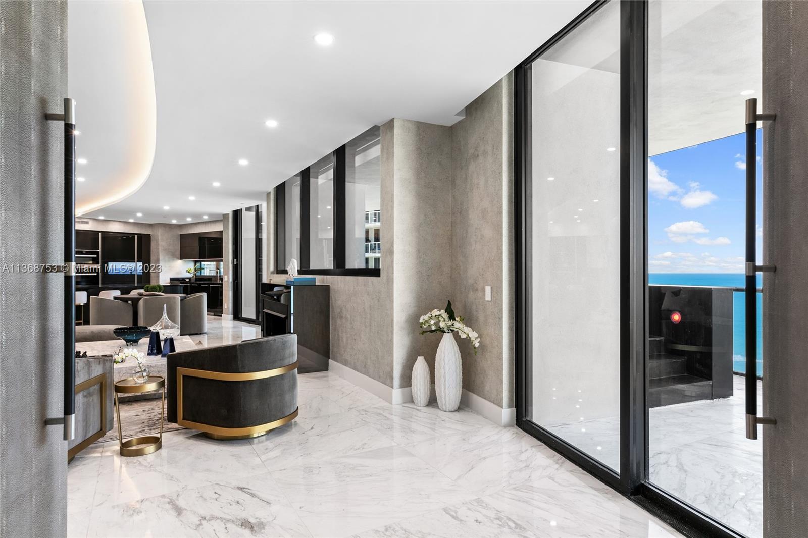 Drive up to your one-of-a-kind mansion in the sky in the ultra-exclusive Porsche Design Tower. Located in the heart of Sunny Isles Beach, this extravagant 3 bedroom, 4.5 bathroom unit features $1,000,000 in renovations, which include doors made of shagreen, marble flooring, a Poggenpohl kitchen, and your very own private garage, allowing you to park directly inside your unit. The entire home is monitored by a smart system, controlling everything from music to lights & more. Enjoy endless ocean views from the master bedroom, or while lounging by your private pool on the expansive balcony. This unit comes fully furnished from Restoration Hardware and is move-in ready. The building offers 5-star amenities, ranging from a restaurant & bar to a world-class gym complete with a sauna, and more.