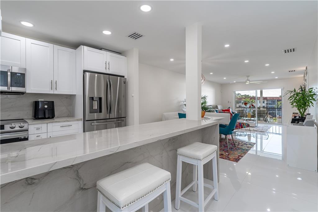 LUXURY PLUS! SPECTACULAR SUNSET, WATER/GOLF VIEW from LR, balcony & MBR. Wide OPEN & BRIGHT Kitchen w/ top-of-line SS appliances. 2 EXQUISITE & designer, lighted mirrors above vanities. 40 mini LED lights throughout & accent lighted brick wall in LR. 35" imported tile throughout. NEW AC DUCTWORK, Tankless Hot Water, WASHER /DRYER INSIDE! 24 hr guard gated. Recreation Lease PAID IN FULL! FREE golf (except cart fees) on two 18 hole courses (PGA & Par3); Amenities include Restaurant, Billiard Room, Bbq/Picnic Area, Clubhouse, Courtesy Bus, Exercise Room, Heated Pool, Library, Putting Green, Sauna, Shuffleboard, Tennis, Pickle Ball, Vehicle Wash Area, Electric Car Charging Station. Close to shopping, dining & highways. 15 min. to the beach. Association says 55+ age required; ONLY THE BEST!