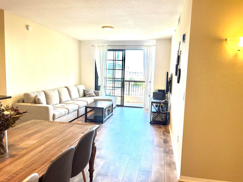 7th floor beautiful and bright unit with views and open floorplan right in downtown Boca Raton! Enjoy resort style urban living with shopping, entertainment, eateries, walk to Mizner, Royal Palm; public transportation, Brightline train to Palm Beach, Miami, and just a mile to the ocean. The unit has new wood flooring throughout, open kitchen, Italian cabinetry, granite countertops, 2 master bedrooms split floorplan with ensuite bathrooms, lots of closets, w/d inside, newer appliances. Pets and investors friendly community. Valet parking available. Great amenities like fitness, social/business center, pool/jacuzzi included. Unit comes with secure garage covered parking space. Location, quality, luxury, convenience, affordability - all at once.