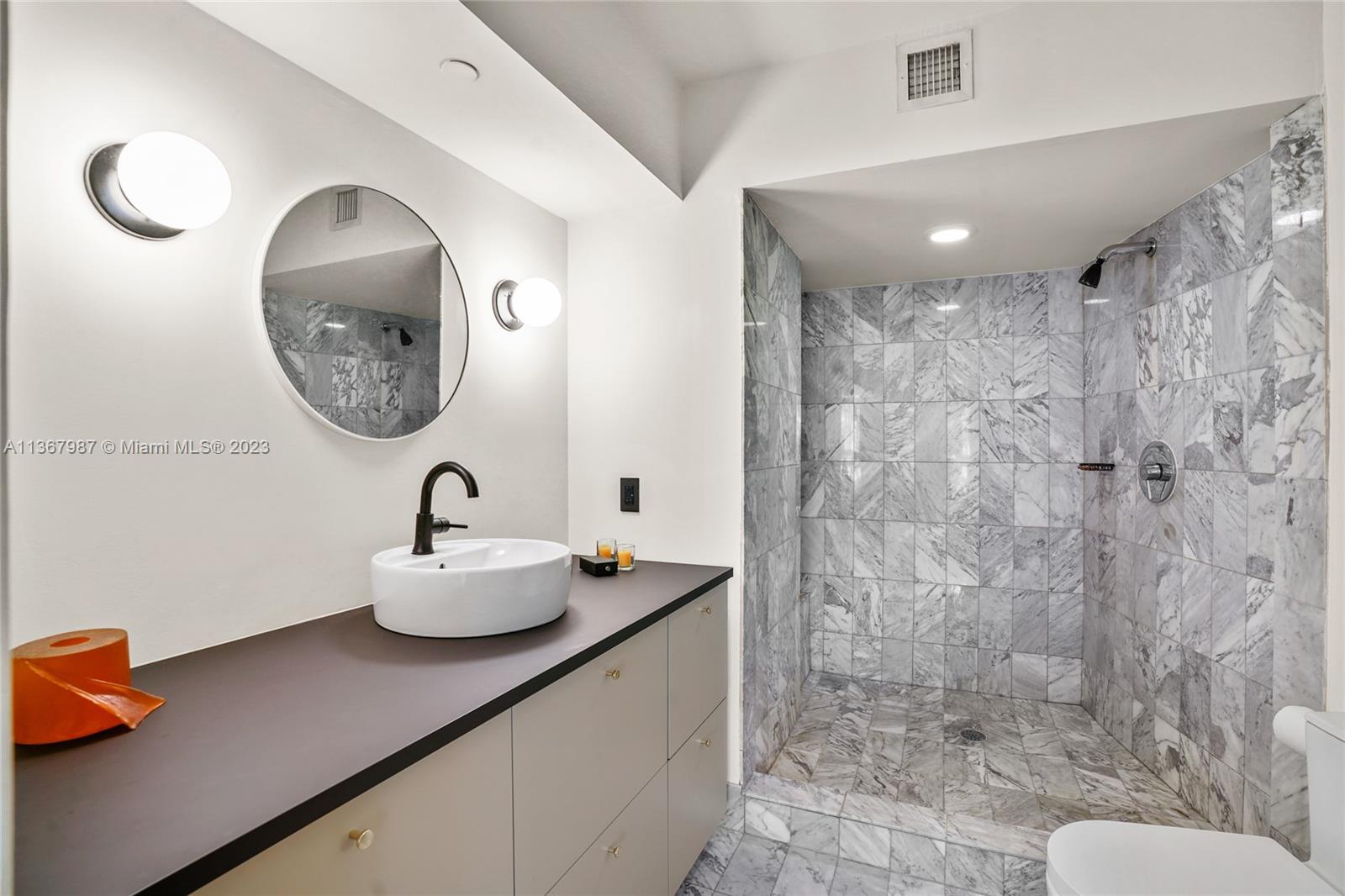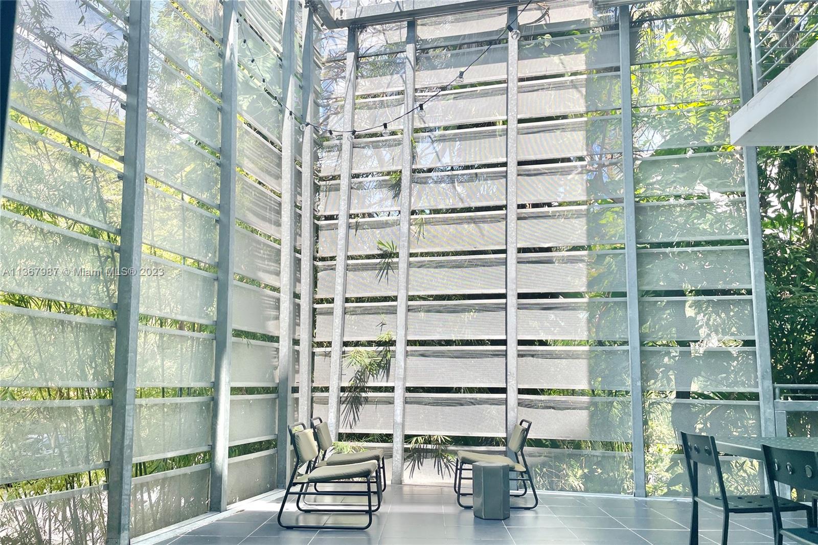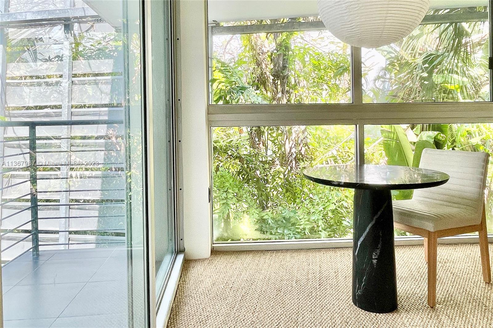 Ilona, 16-unit boutique building located in the coveted South of Fifth neighborhood. Designed by architect Chad Oppenheim, this recently remodeled, industrial-chic, corner loft has 2 bedrooms, 2 bathrooms, and 17' ceilings. Two big outdoor spaces surrounded by trees and tropical plants: a very private terrace and a balcony off the main bedroom. Top-of-the-line appliances: Fisher & Paykel, Perlick, Miele. Natural oak kitchen cabinetry by Danish design studio Reform. Terrazzo floors and many windows facing west for sunset light. Each bedroom has ample closet space and en-suite marble bathrooms. Main bedroom has extra space for working and relaxing, plus a washer/dryer. Includes parking space. Short walking distance to the beach, cafes, world-renowned restaurants, and South Pointe Park.