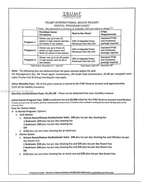 Oceanfront Trump International Beach resort Condo Hotel . Junior suite with Gorgeous Bay view, with washer and dryer in the unit and owners closet, 664 sq.ft. King size bed with sitting area, pull out sofa bed. Enjoy ocean, beach and 5 stars hotel amenities for up to 12 weeks per year and earn good income from renting with the hotel program. Rental programs are attached and income statements can be shown upon request.